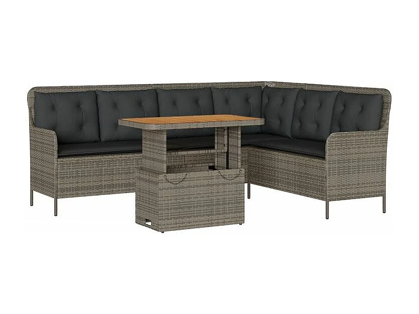 Salon de jardin 2 pcs avec coussins Gris Résine tressée