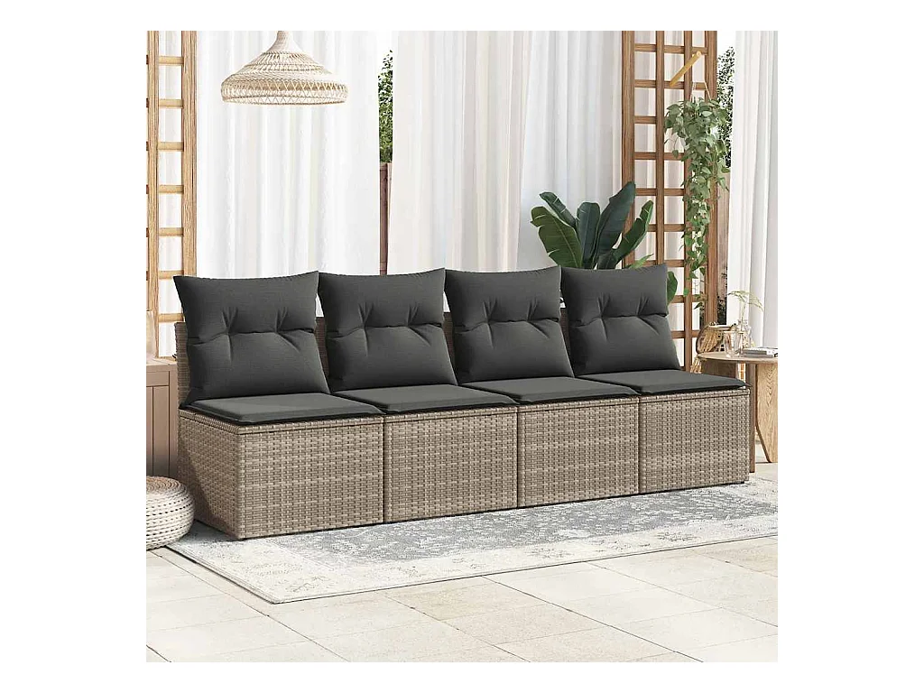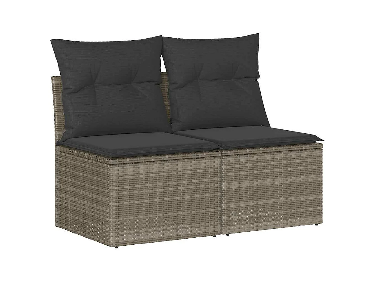 Salon de jardin 2 pcs avec coussins gris résine tressée acacia