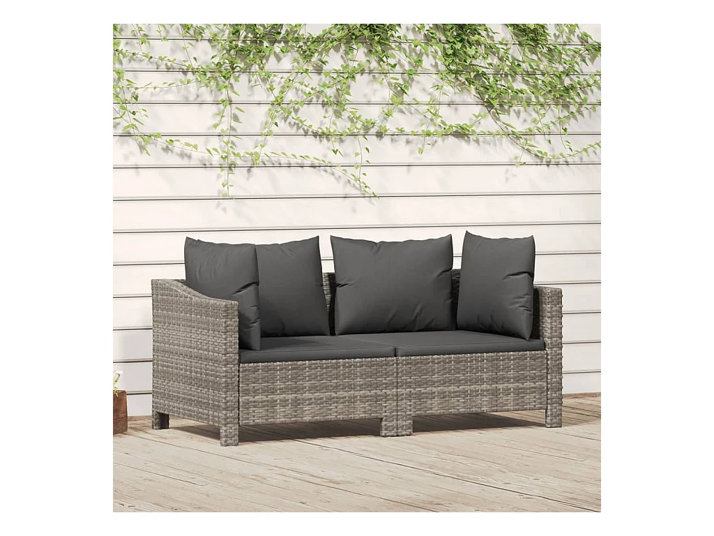 Salon de jardin 2 pcs avec coussins Gris Résine tressée BE70546