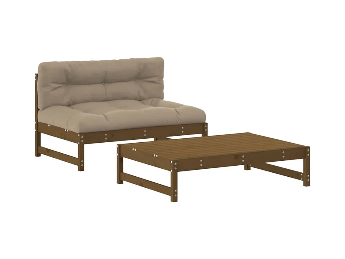 Salon de jardin 2 pcs avec coussins marron miel bois massif BE50815