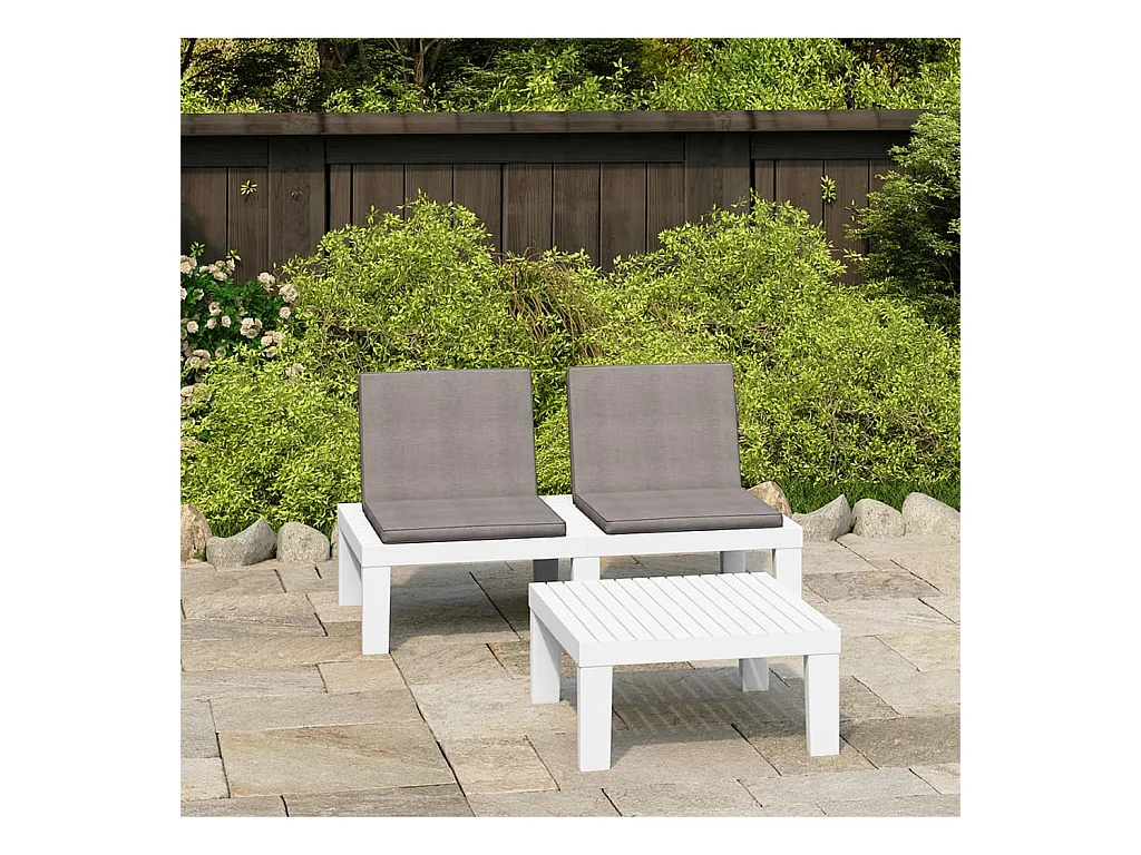 Salon de jardin 2 pcs avec coussins Plastique Blanc BE73334