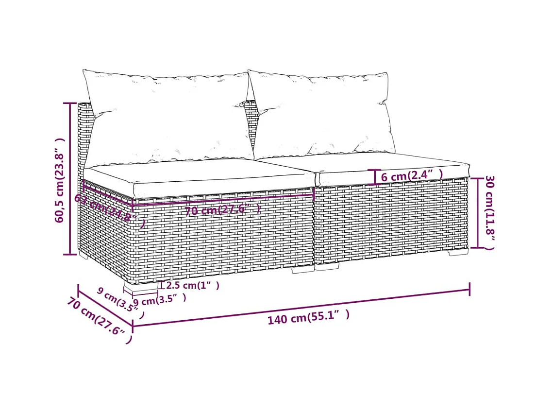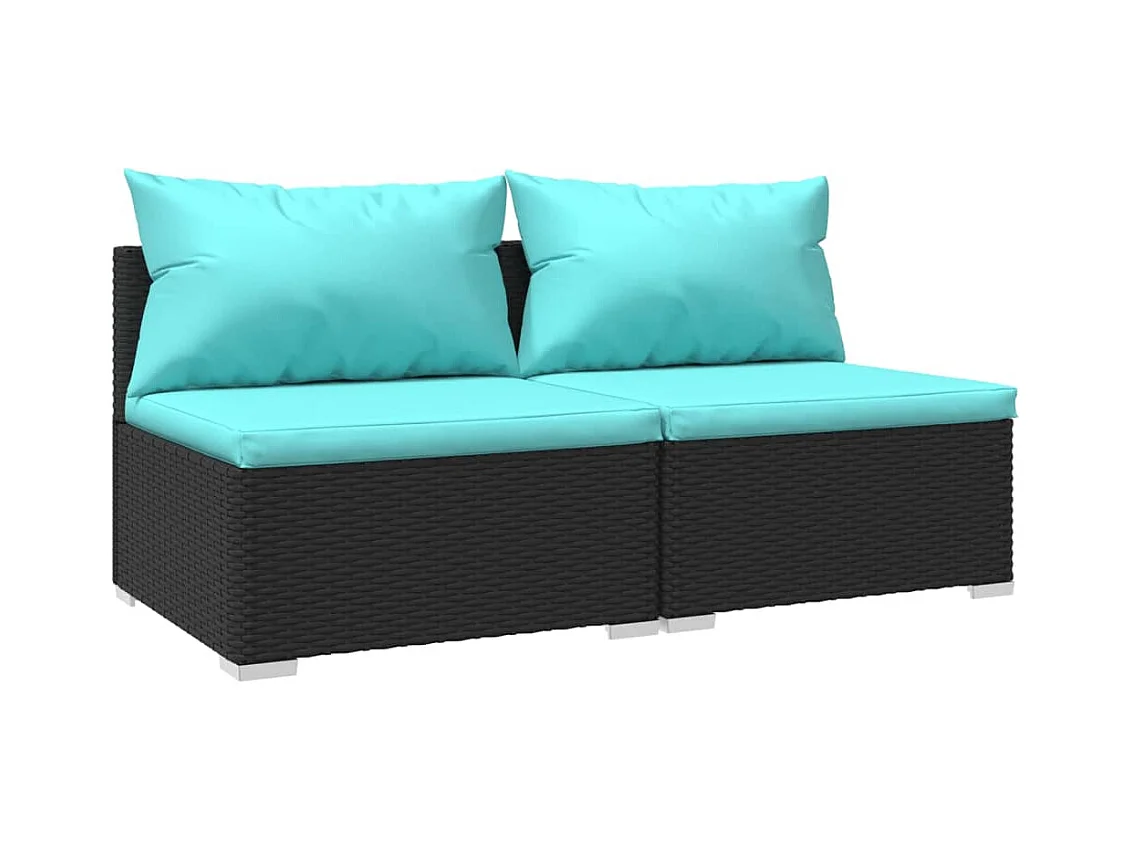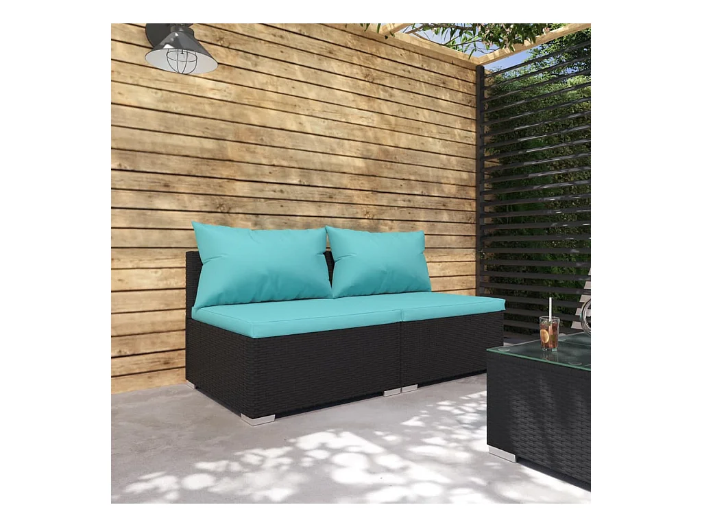 Salon de jardin 2 pcs avec coussins Résine tressée Noir BE55631