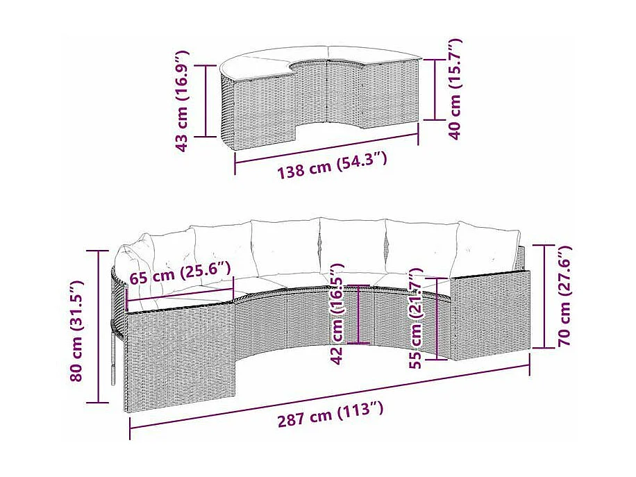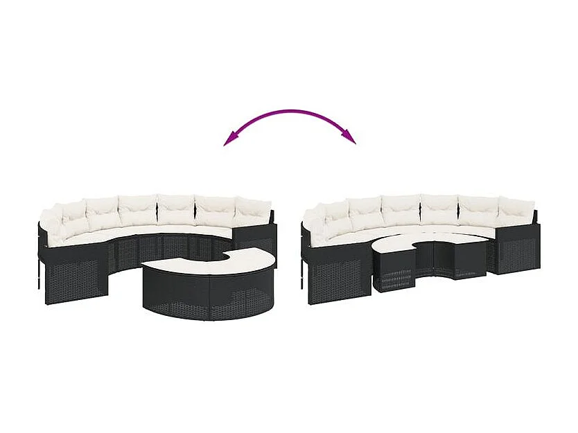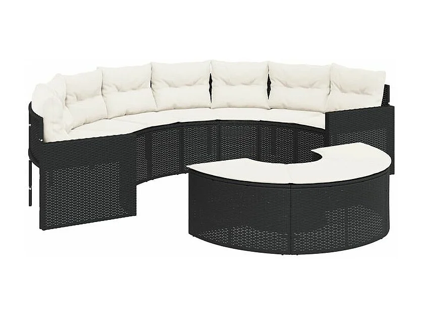 Salon de jardin 2 pcs demi-rond noir résine tressée