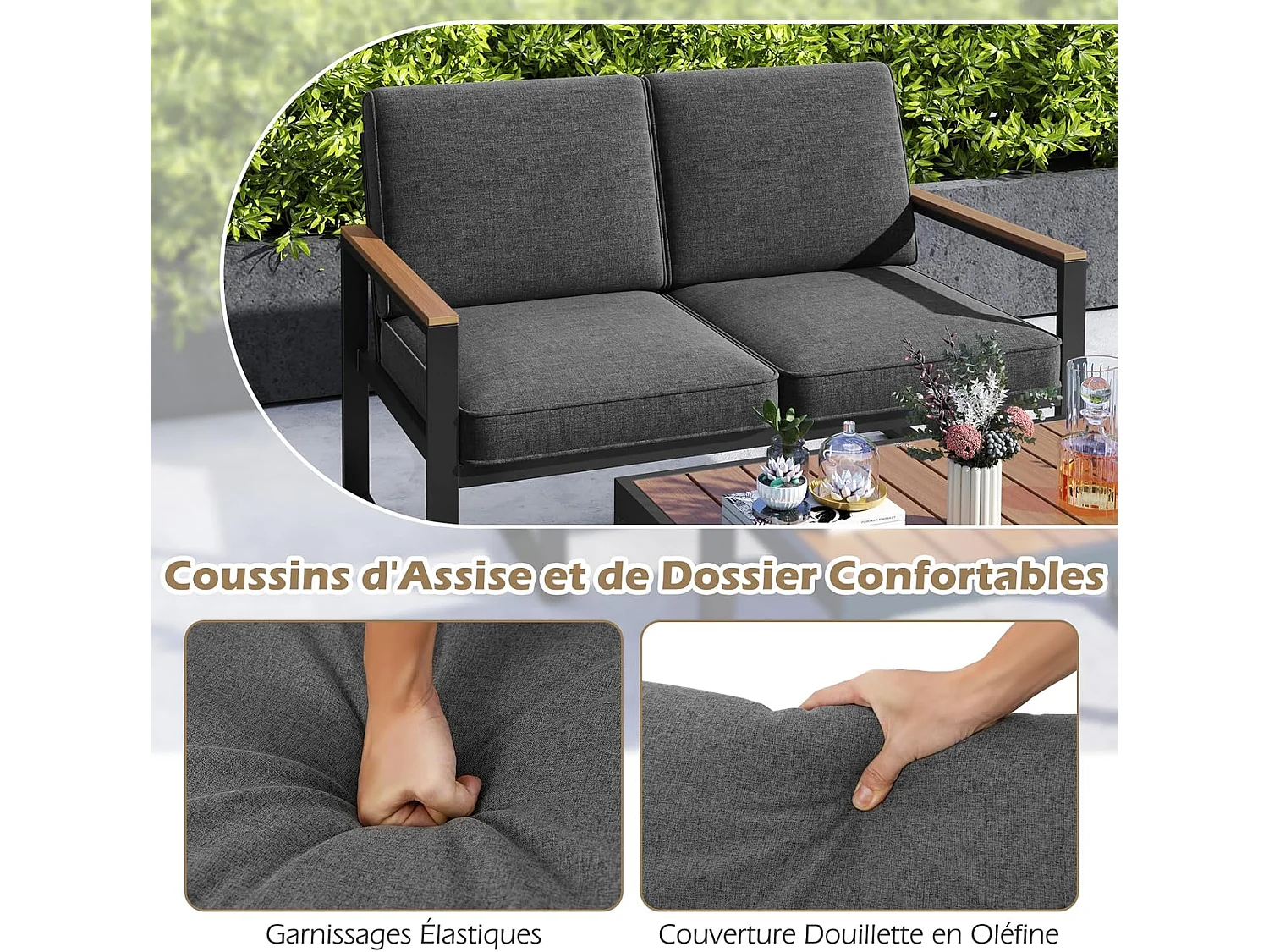 Salon de Jardin 2 Pièces avec Table Basse Causeuse, Ensemble de Meubles d'Extérieur en Aluminium avec Accoudoirs et Plateau en Bois, pour Patio Balcon