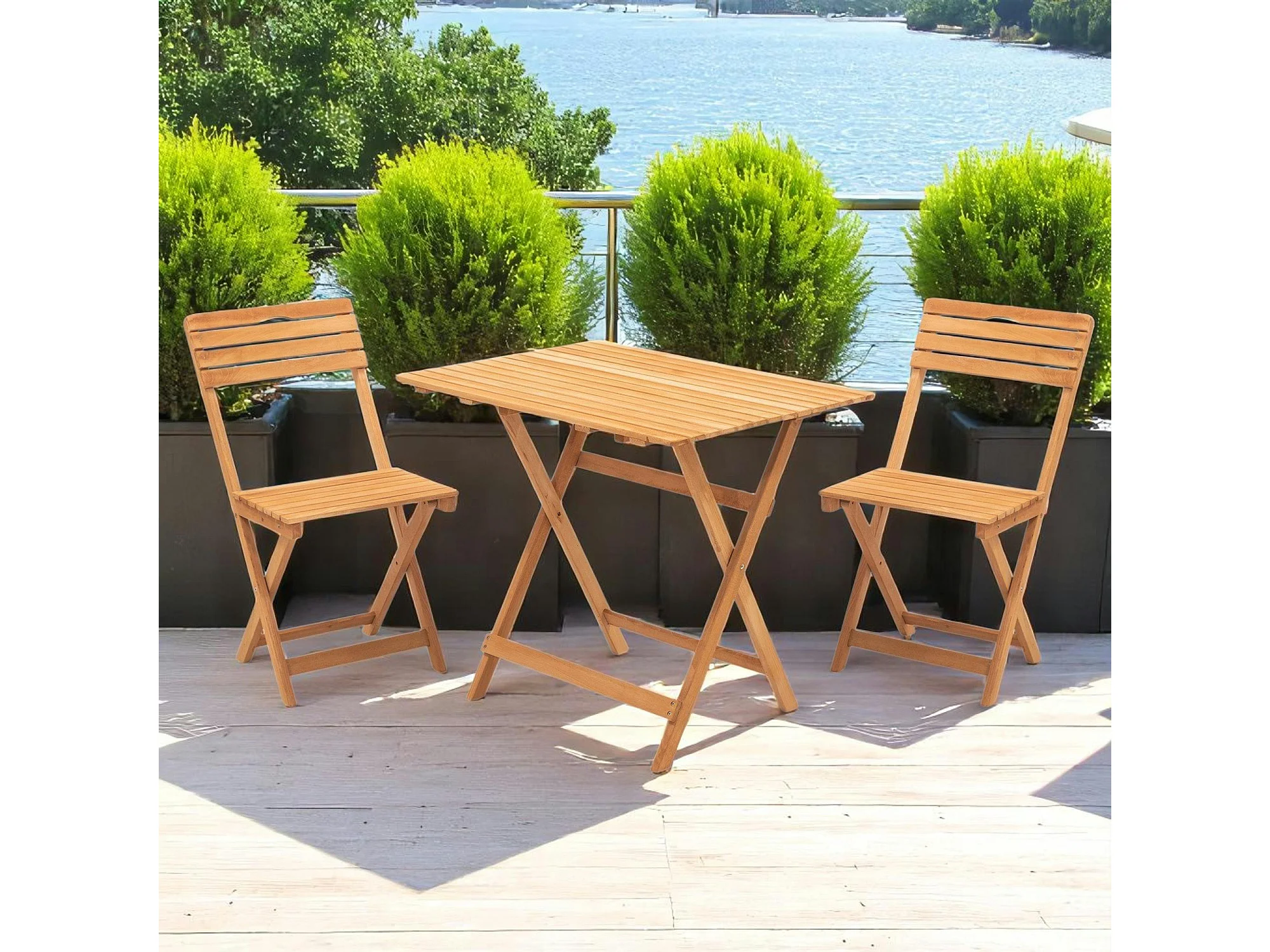 Salon de jardin 2 places - pliant, bois (3 pièces) SORA