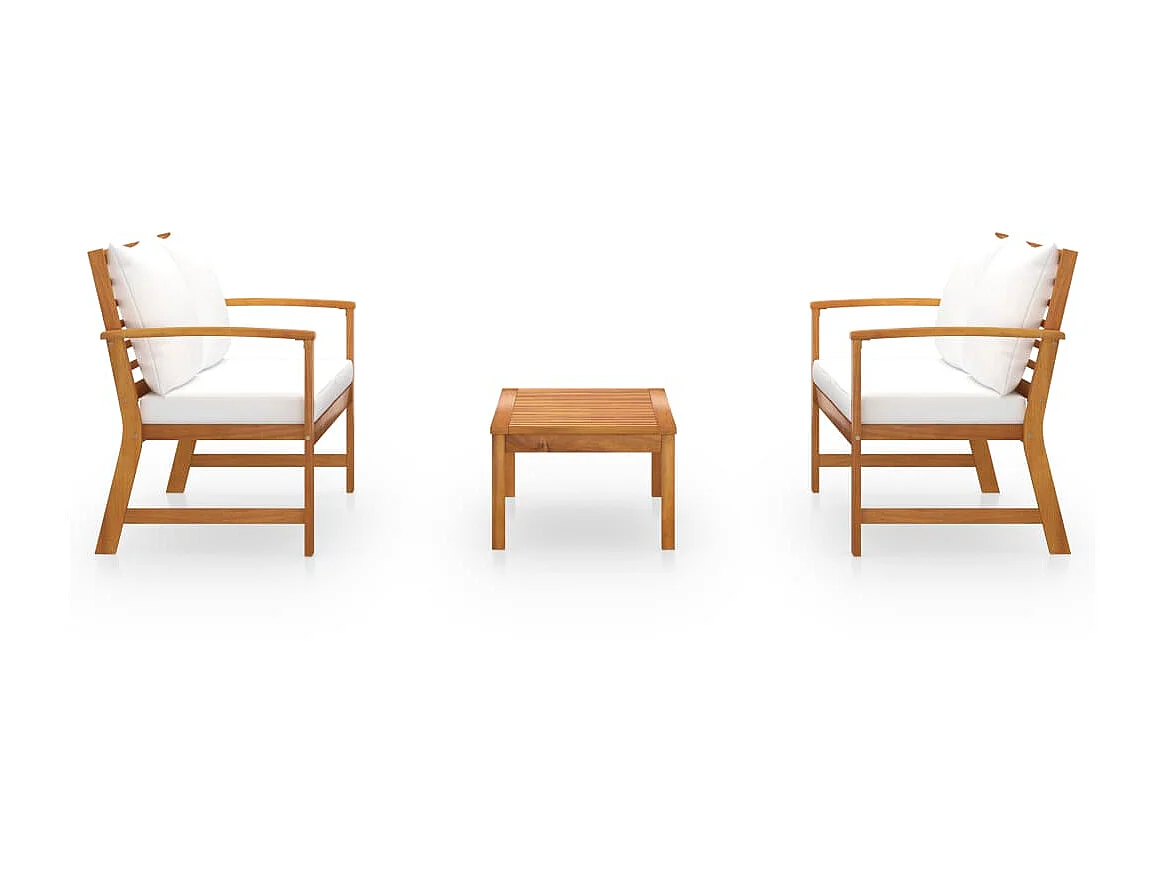 Salon de jardin 3 pcs avec coussin Bois d'acacia solide 2