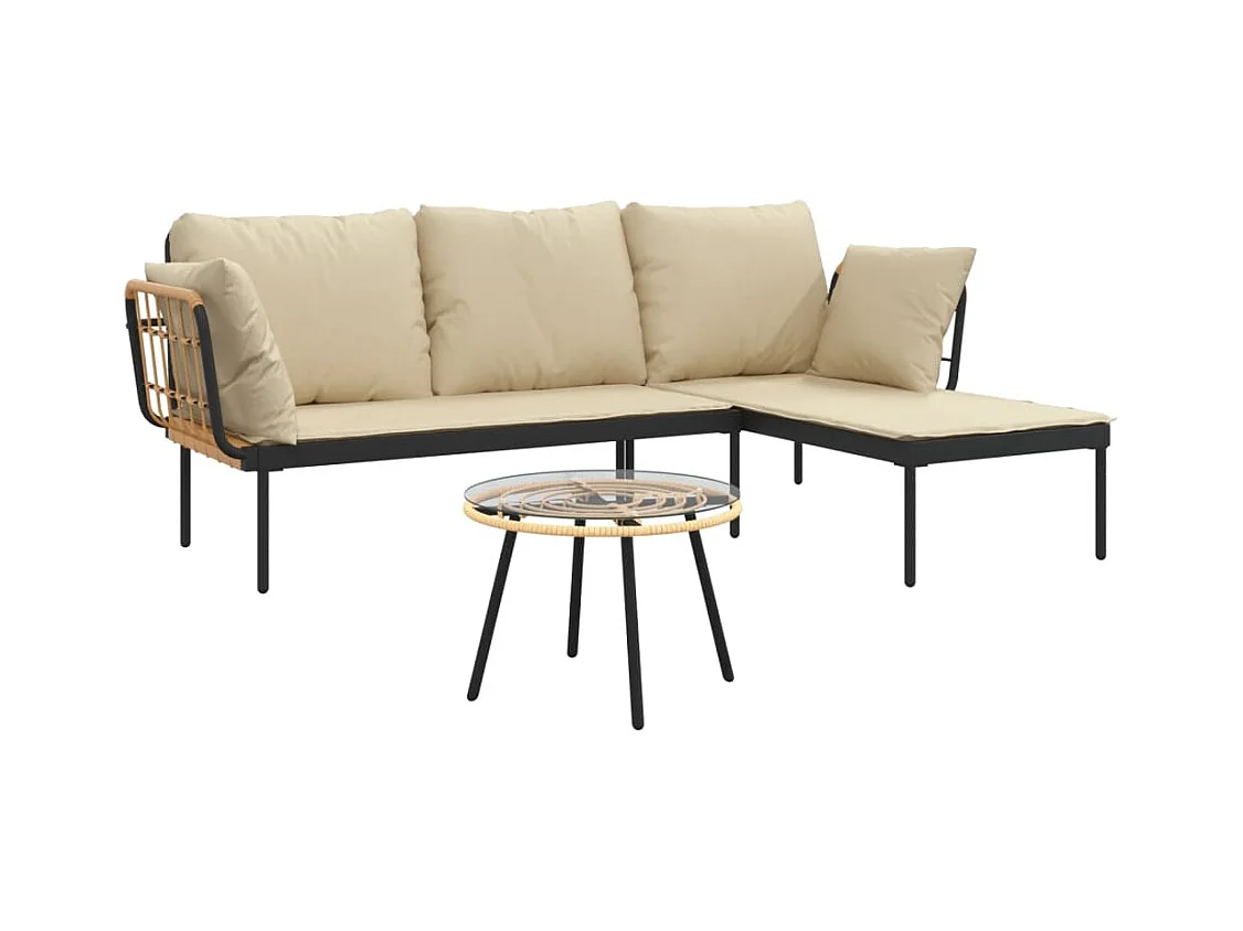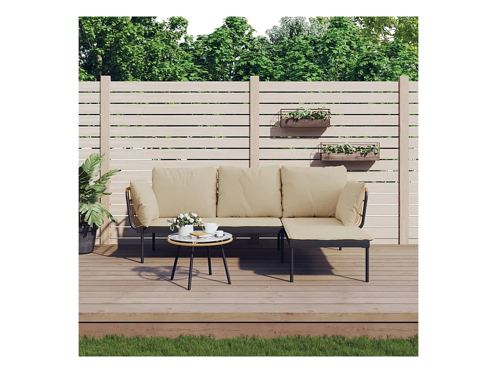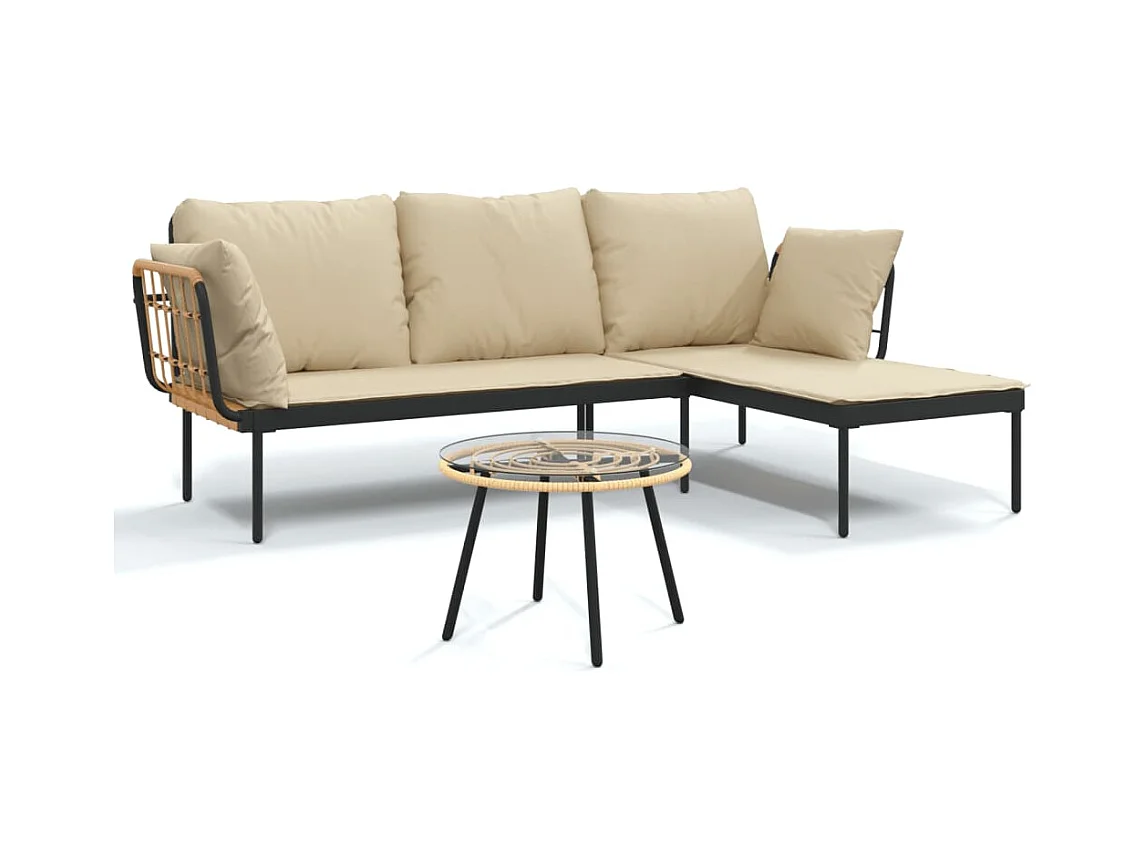 Salon de jardin 3 pcs avec coussins beiges résine tressée SSG95960
