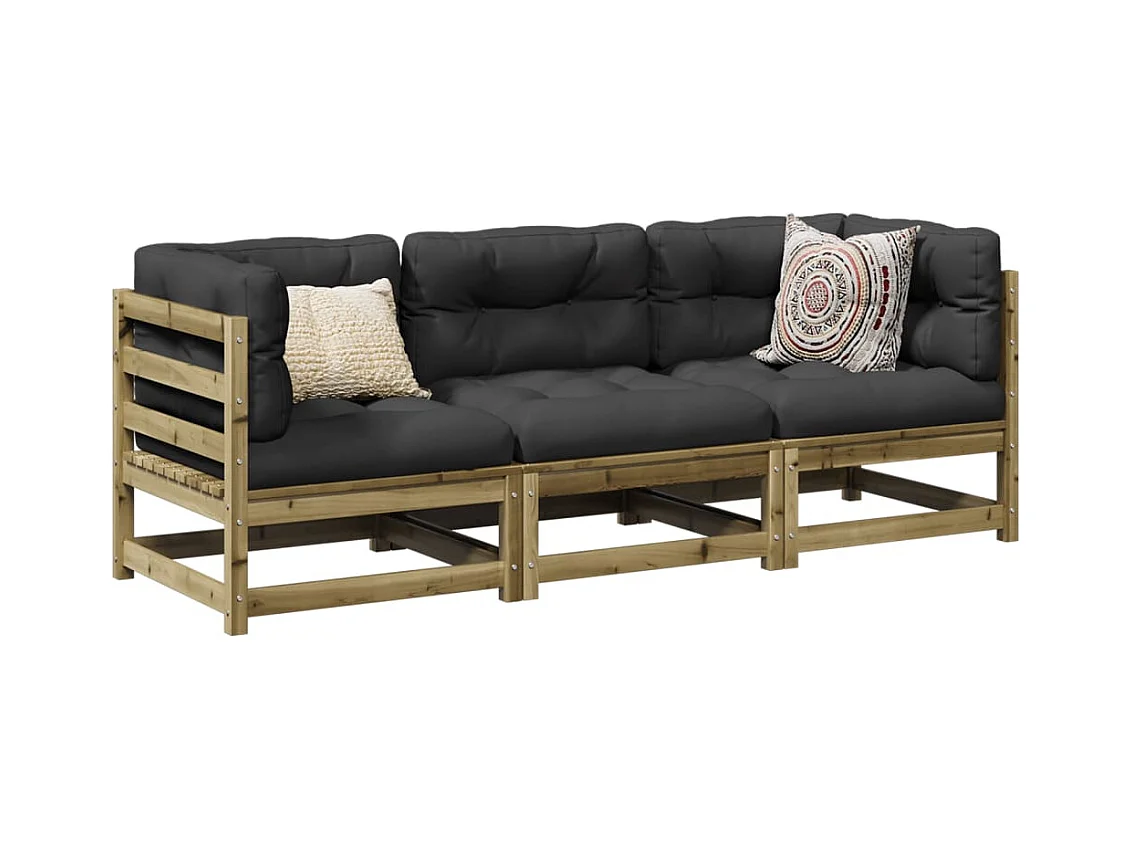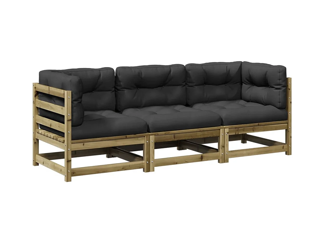Salon de jardin 3 pcs avec coussins bois de pin imprégné FR52475