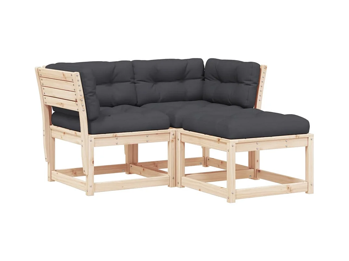 Salon de jardin 3 pcs avec coussins bois de pin massif FR46706