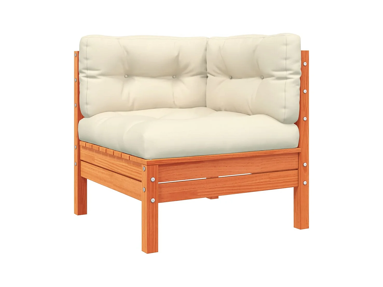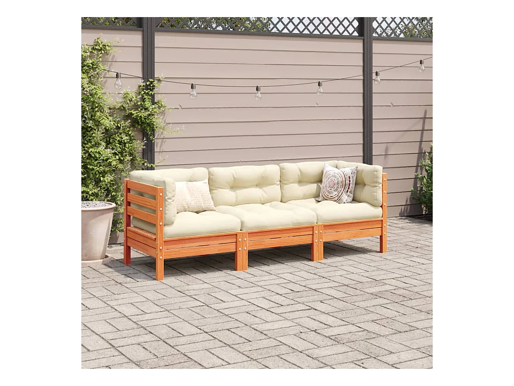 Salon de jardin 3 pcs avec coussins cire marron bois pin massif
