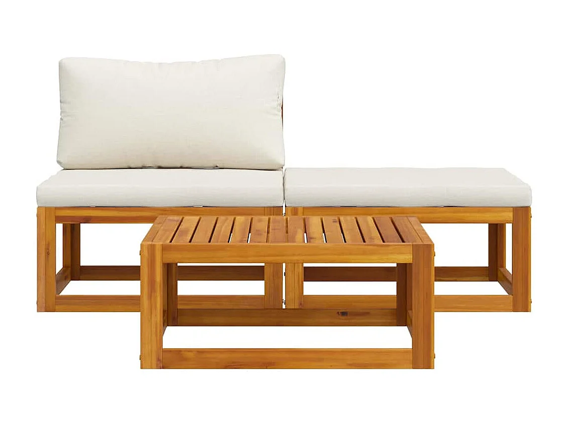 Salon de jardin 3 pcs avec coussins crème Bois d'acacia solide