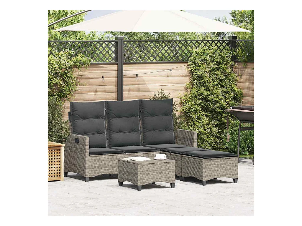 Salon de jardin 3 pcs avec coussins forme L gris résine tressée