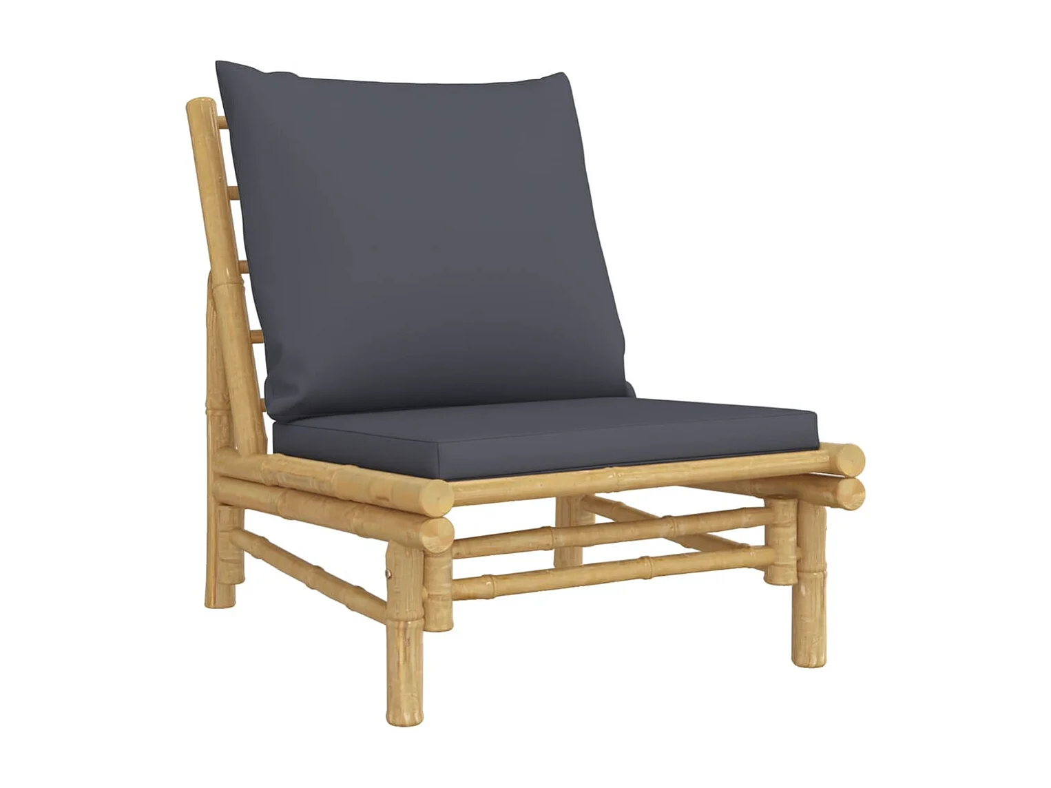 Salon de jardin 3 pcs avec coussins gris foncé bambou