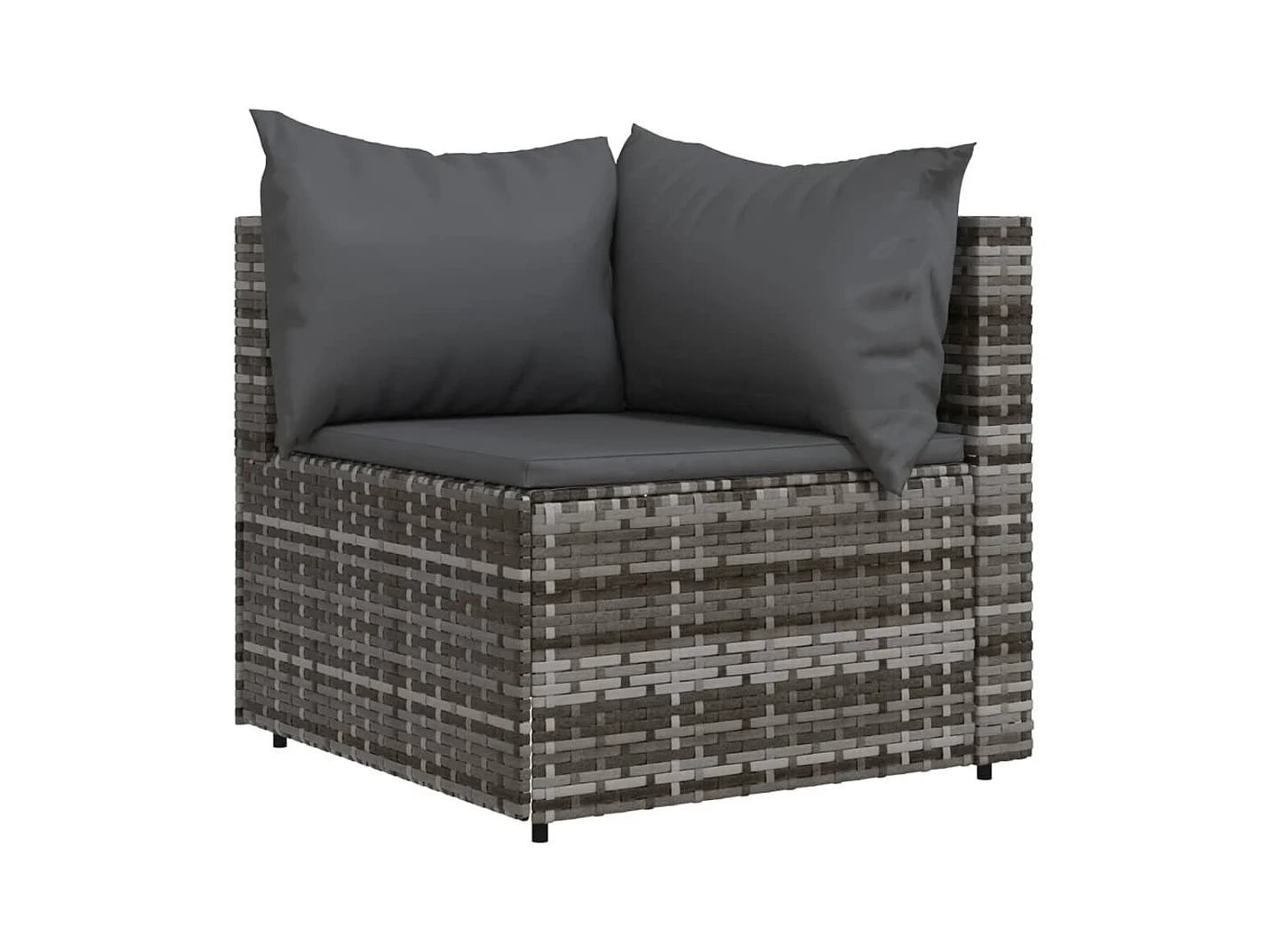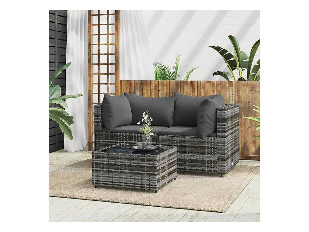 Salon de jardin 3 pcs avec coussins Gris Résine tressée