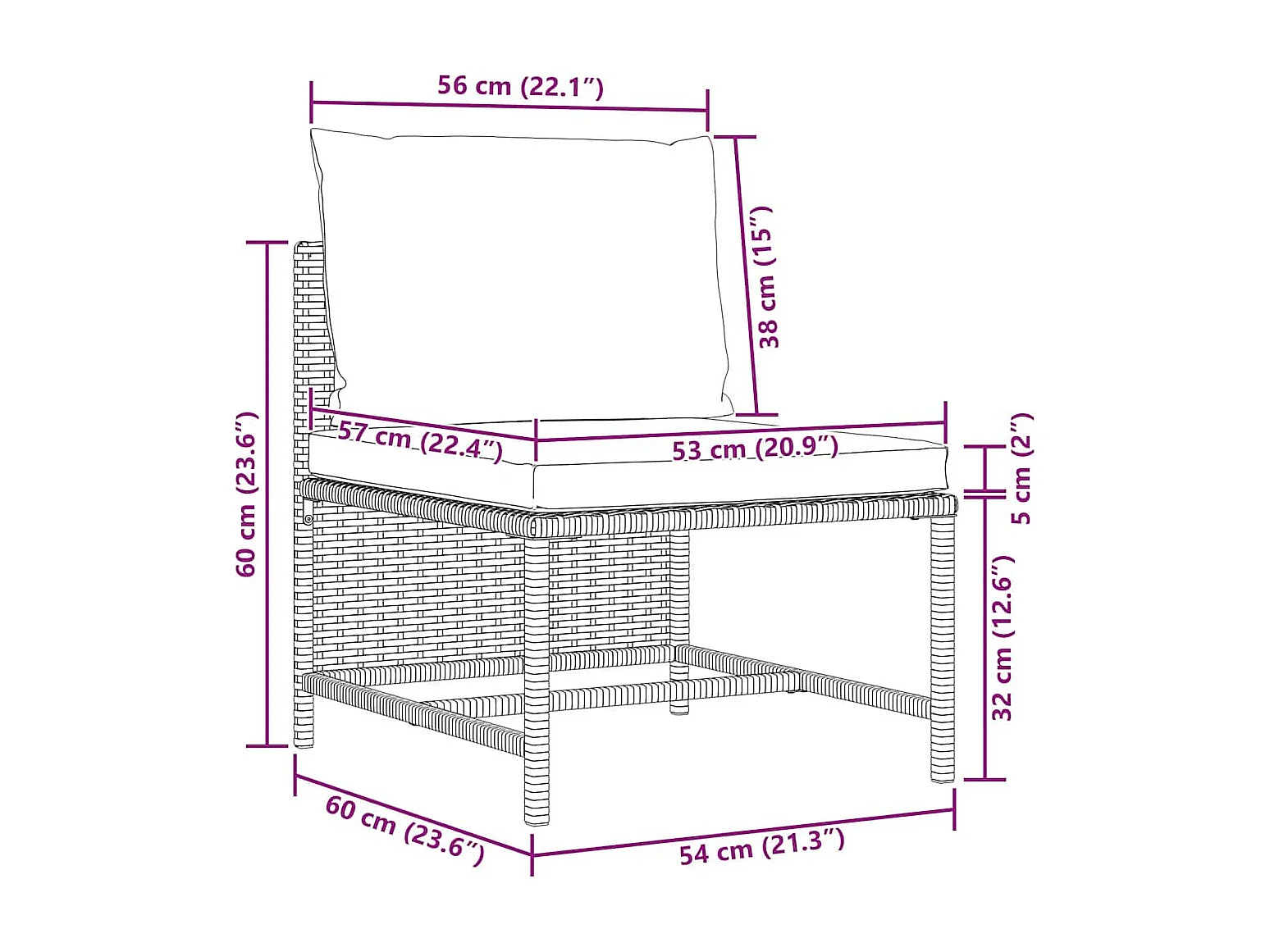 Siège central sectionnel 1 pc et coussins Résine tressée Gris