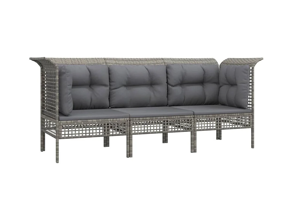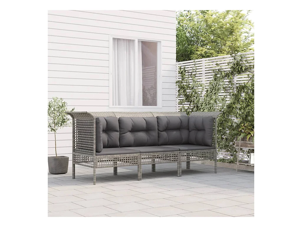 Salon de jardin 3 pcs avec coussins Gris Résine tressée BE76576