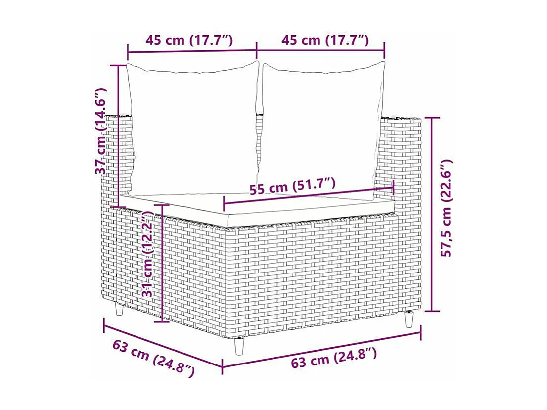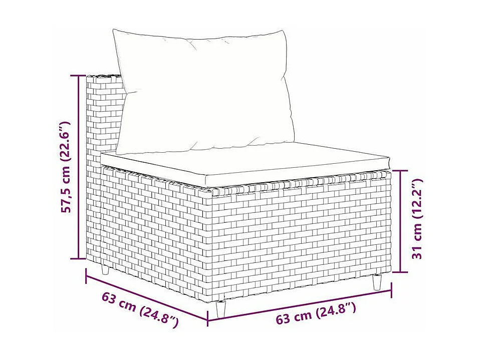 Salon de jardin 3 pcs avec coussins noir résine tressée