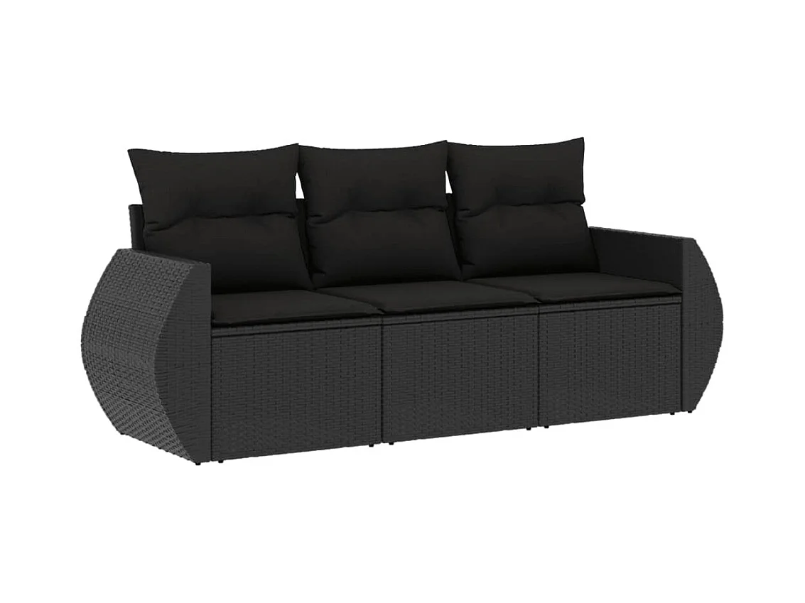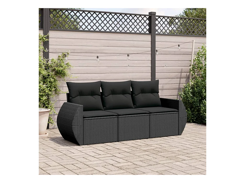 Salon de jardin 3 pcs avec coussins noir résine tressée BE57355
