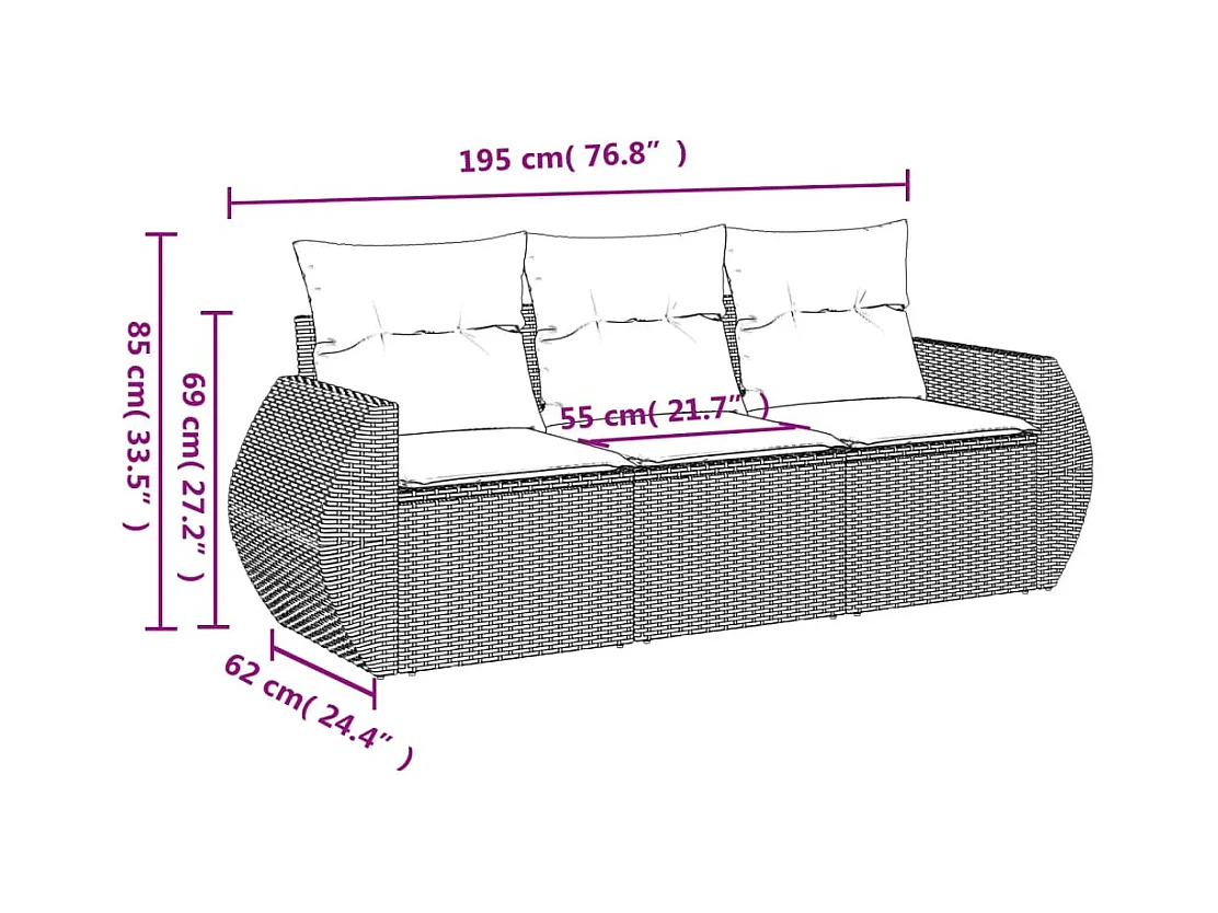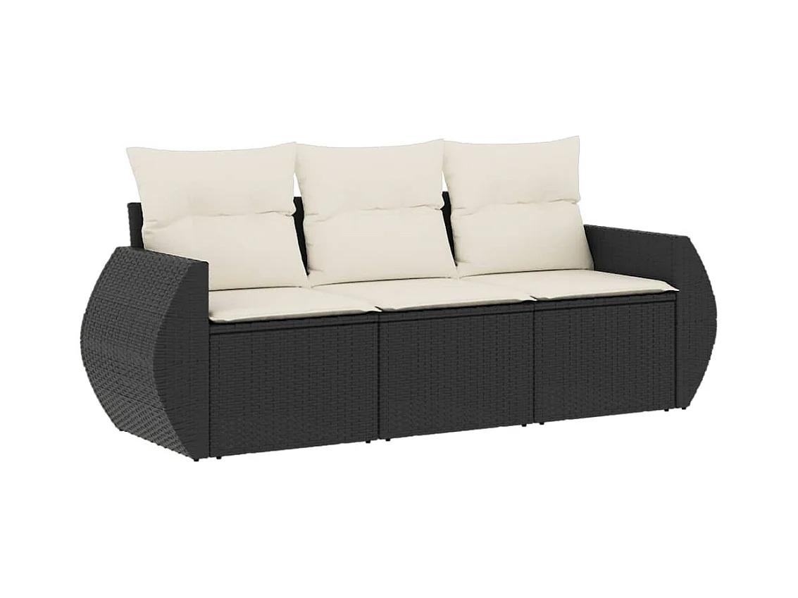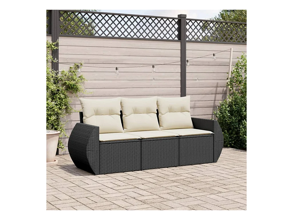 Salon de jardin 3 pcs avec coussins noir résine tressée BE36426