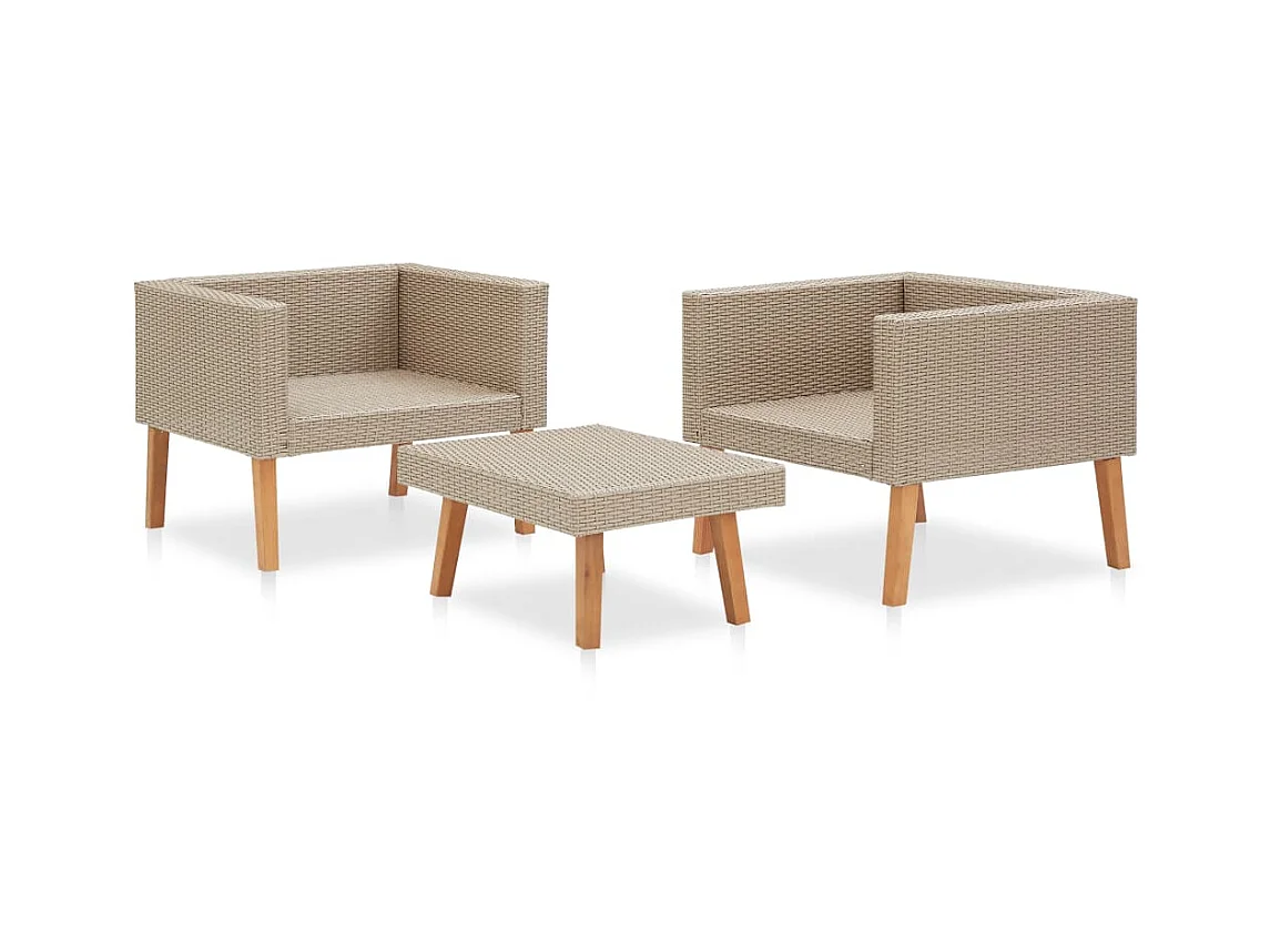 Salon de jardin 3 pcs avec coussins Résine tressée Beige
