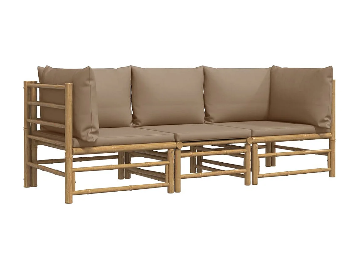 Salon de jardin 3 pcs avec coussins taupe bambou