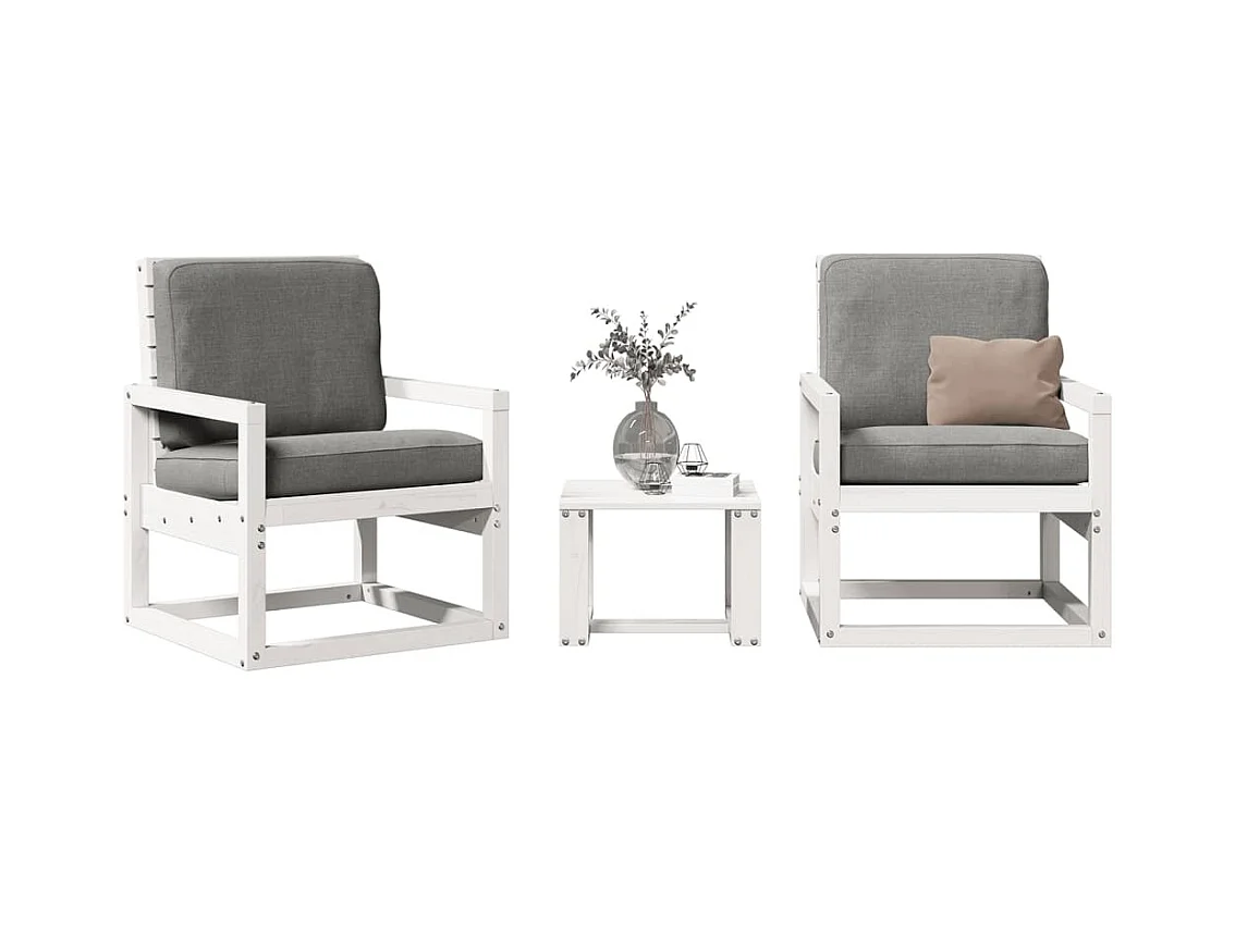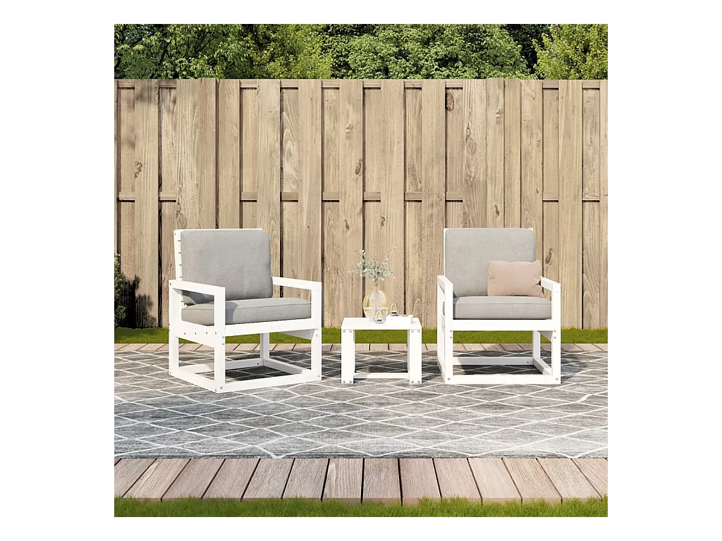 Salon de jardin 3 pcs blanc bois massif de pin FR22765