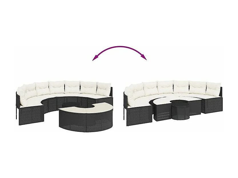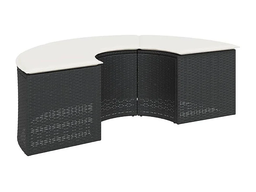 Salon de jardin 3 pcs demi-rond noir résine tressée