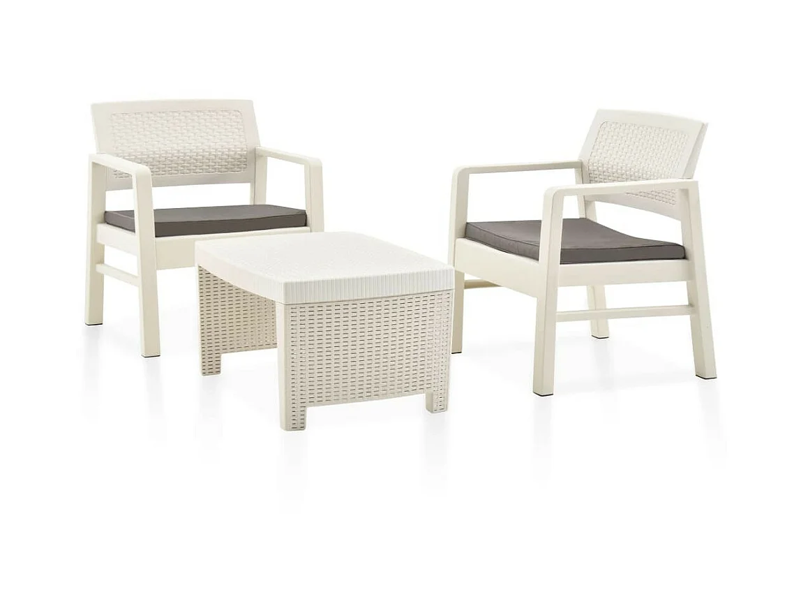 Salon de jardin 3 pcs Plastique Blanc 2
