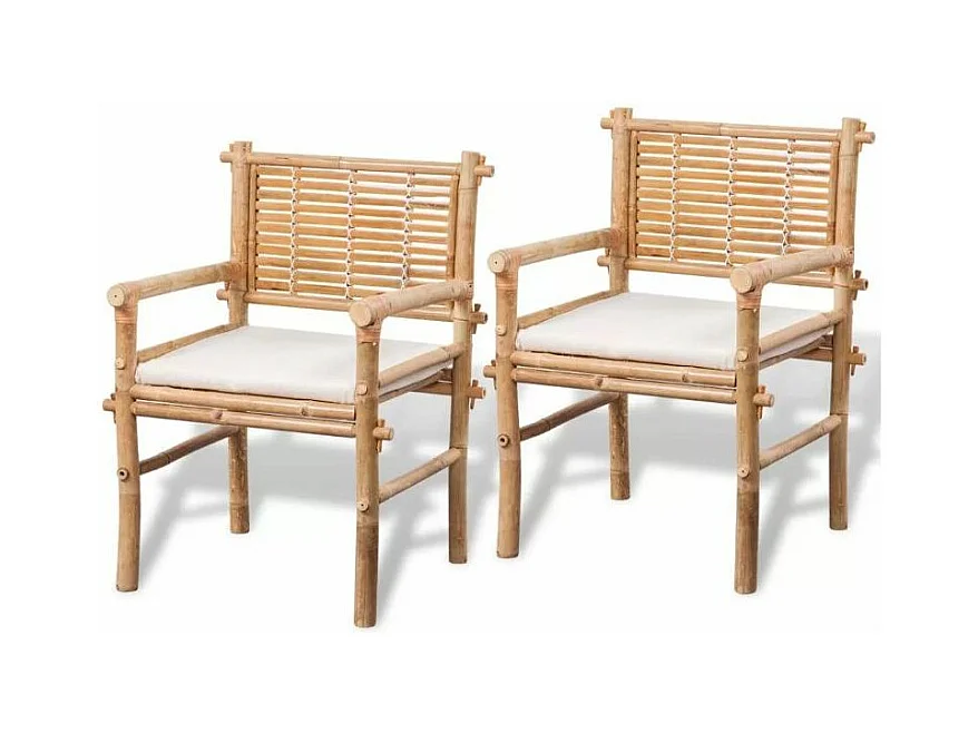 Salon de jardin 3 pièces bambou clair coussins blanc Kyca