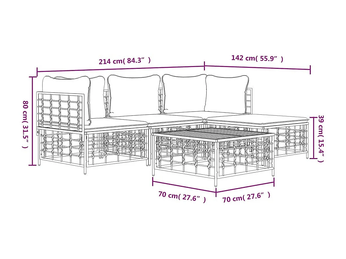 Salon de jardin 4 pcs avec coussins anthracite résine tressée