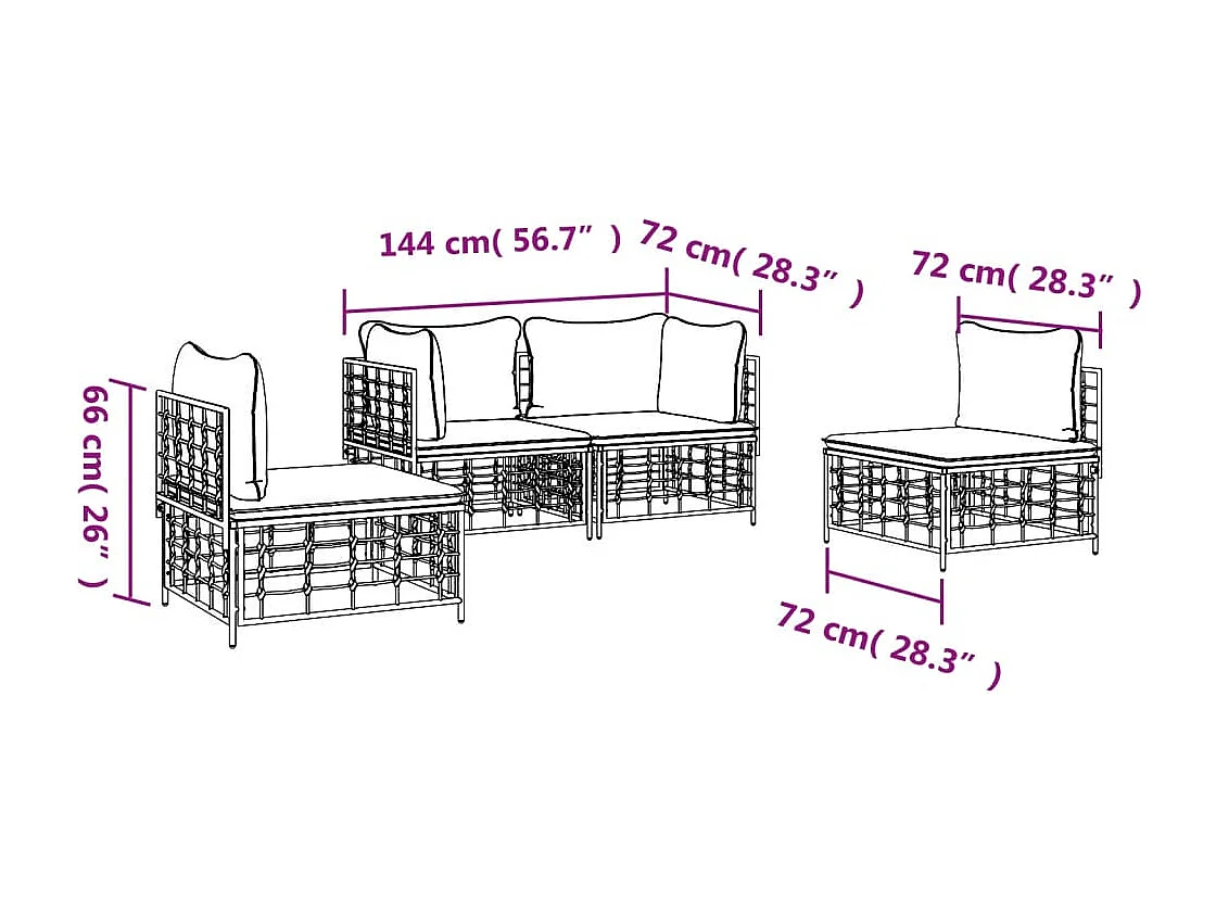 Salon de jardin 4 pcs avec coussins anthracite résine tressée
