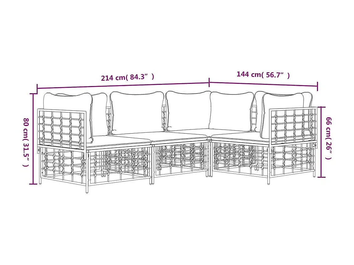Salon de jardin 4 pcs avec coussins anthracite résine tressée