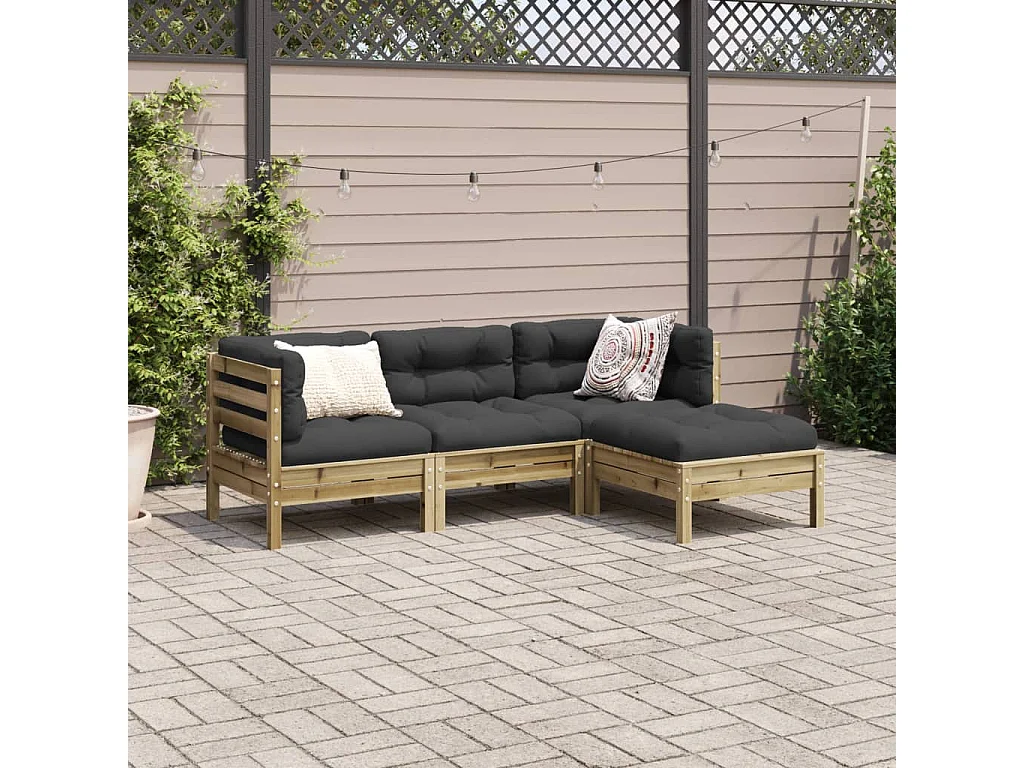 Salon de jardin 4 pcs avec coussins bois de pin imprégné