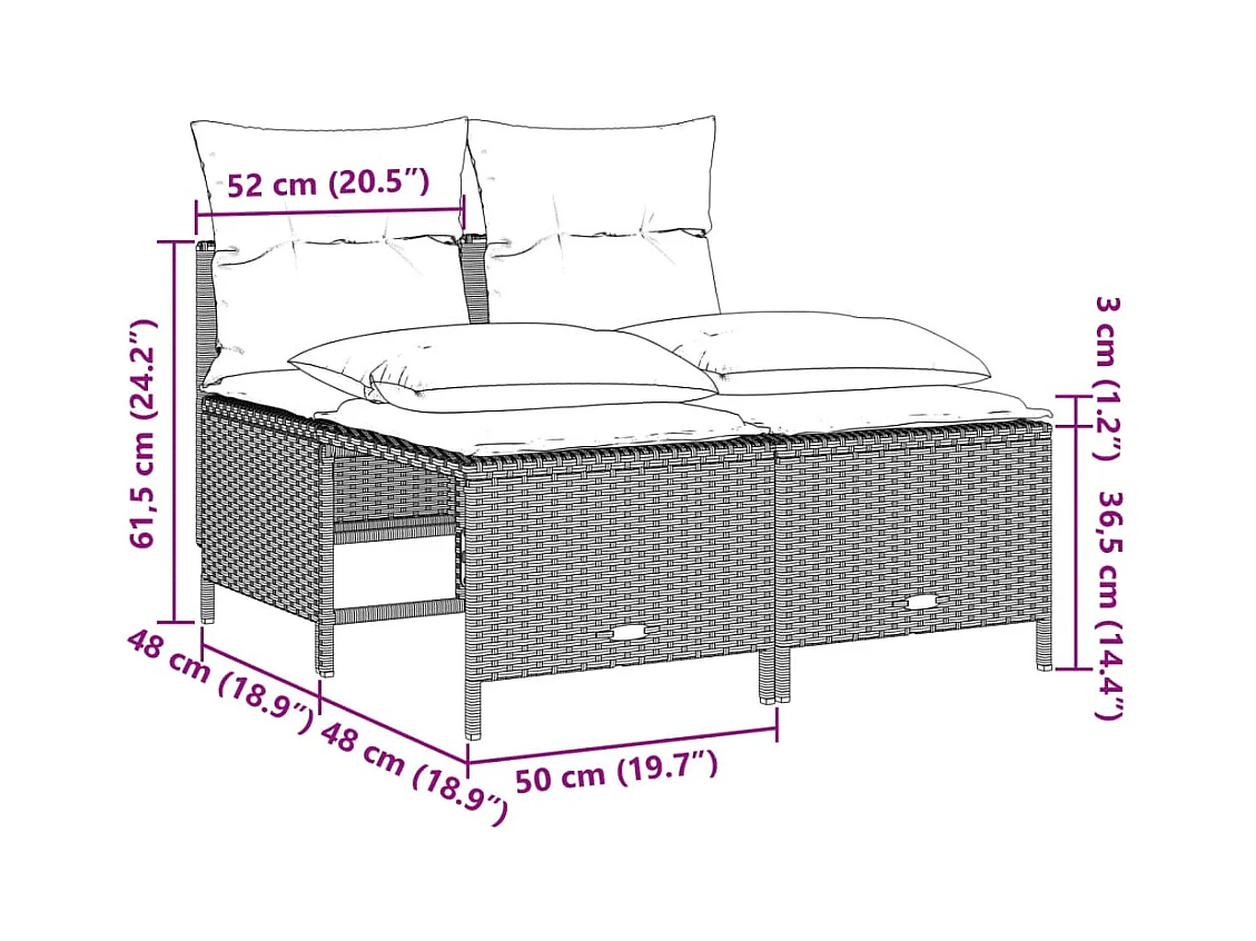 Salon de jardin 4 pcs avec coussins gris clair résine tressée