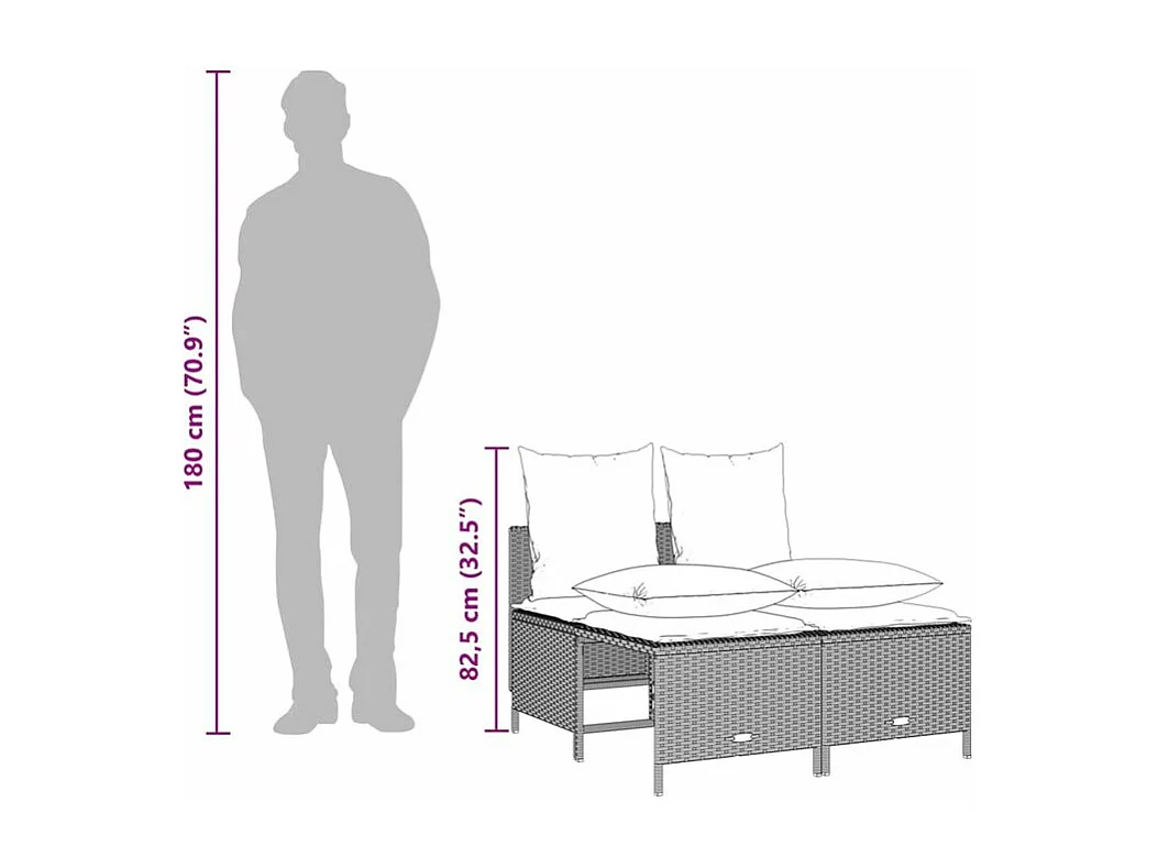 Salon de jardin 4 pcs avec coussins gris clair résine tressée