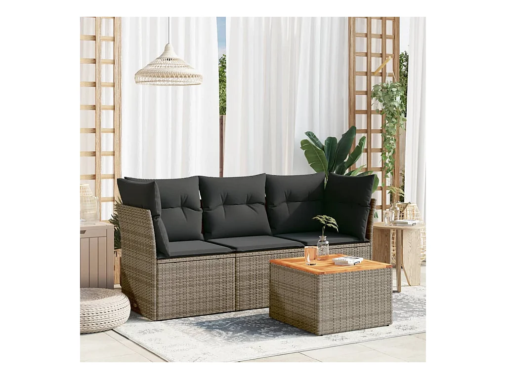 Salon de jardin 4 pcs avec coussins gris résine tressée