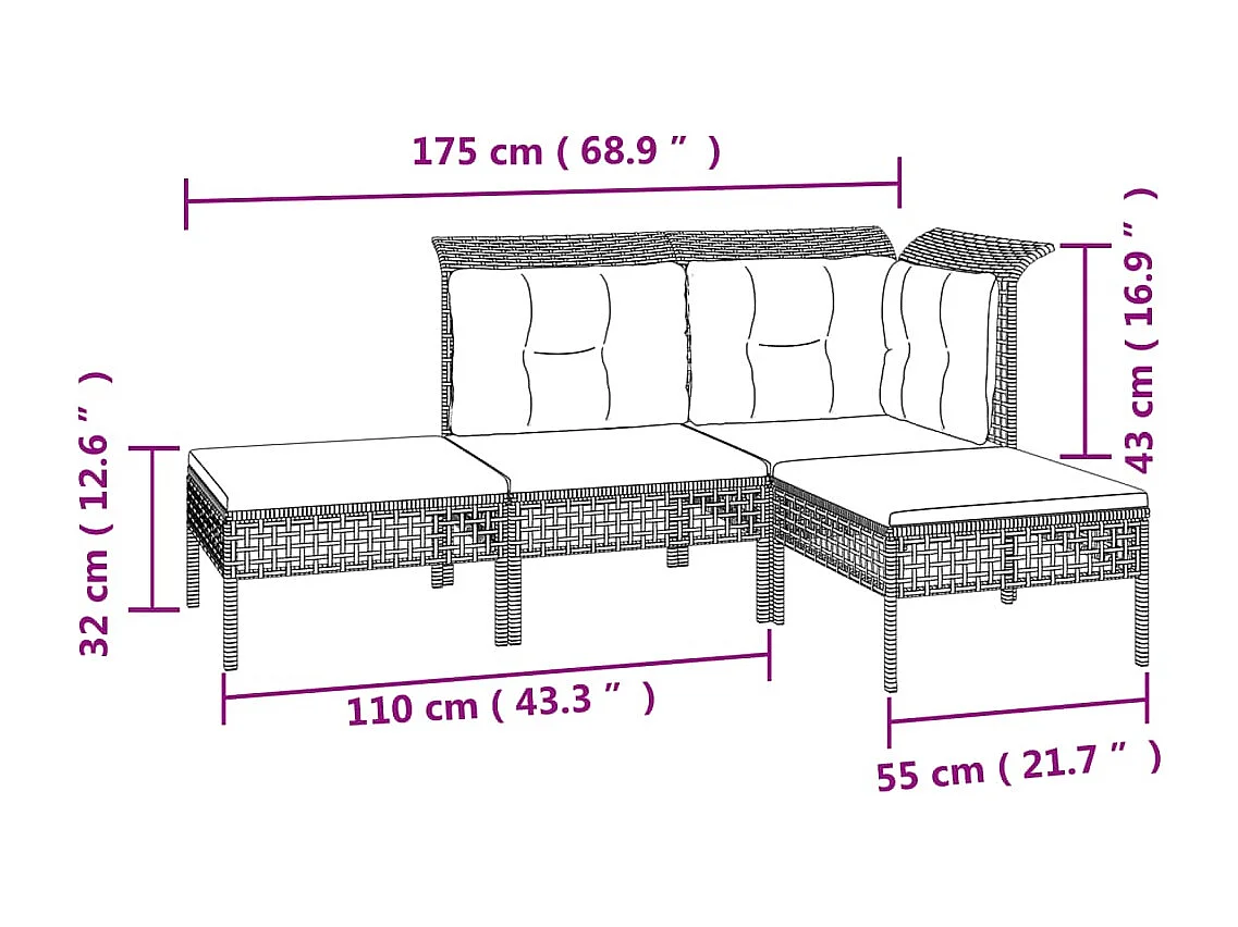 Salon de jardin 4 pcs avec coussins Gris Résine tressée