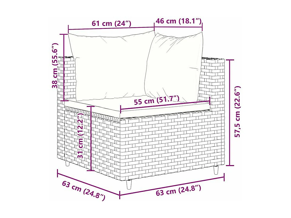 Salon de jardin 4 pcs avec coussins Gris Résine tressée