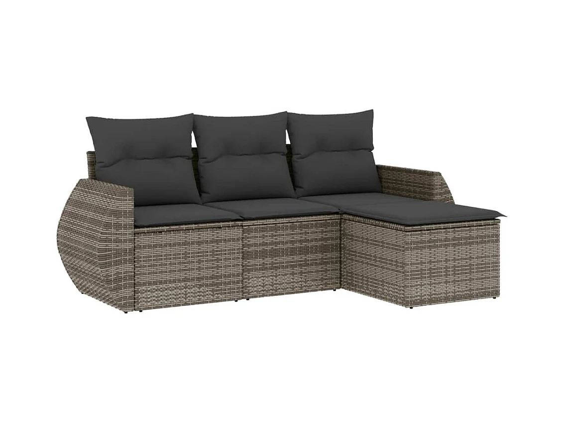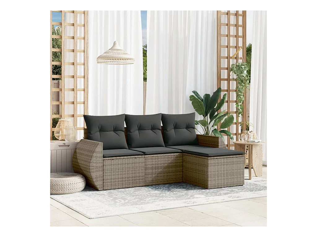 Salon de jardin 4 pcs avec coussins gris résine tressée FR81665