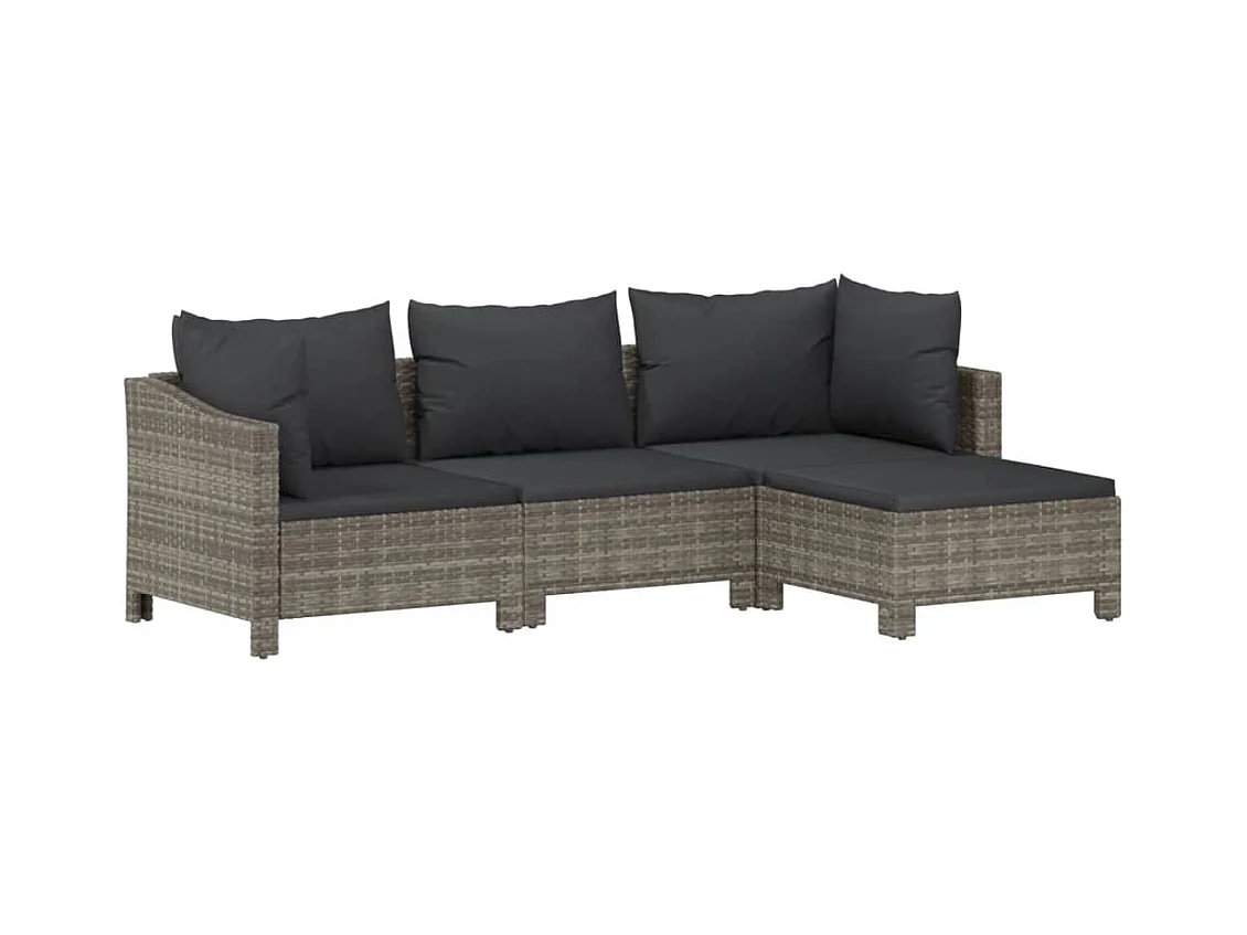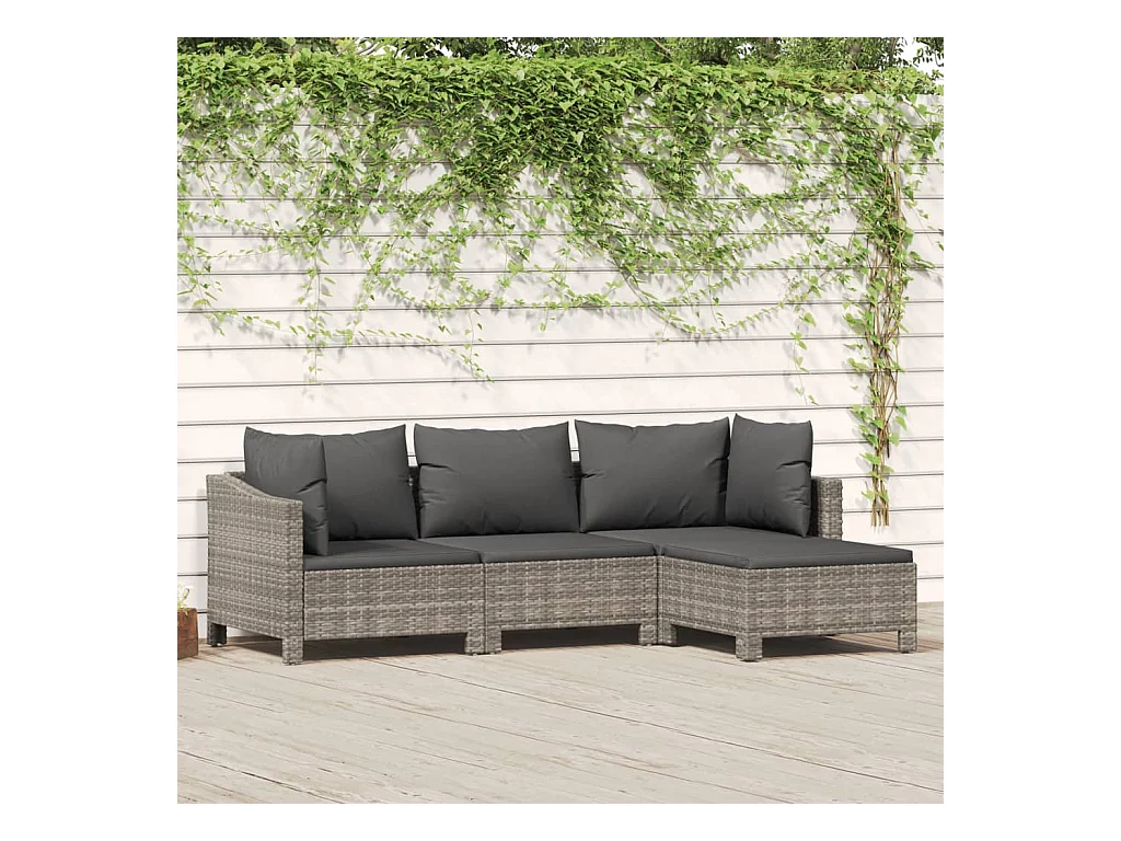Salon de jardin 4 pcs avec coussins Gris Résine tressée BE95362