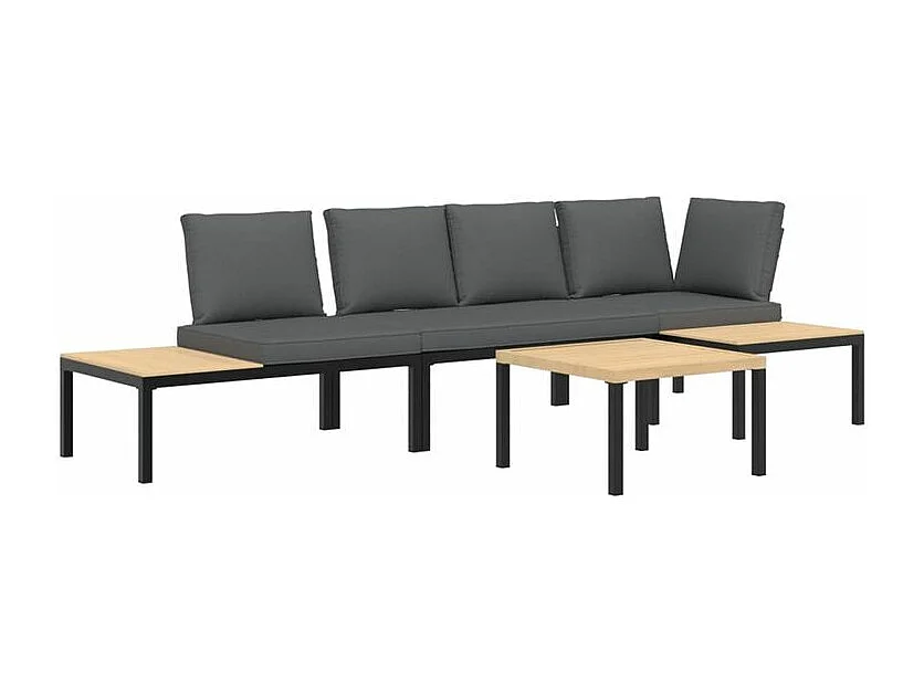 Salon de jardin 4 pcs avec coussins noir aluminium