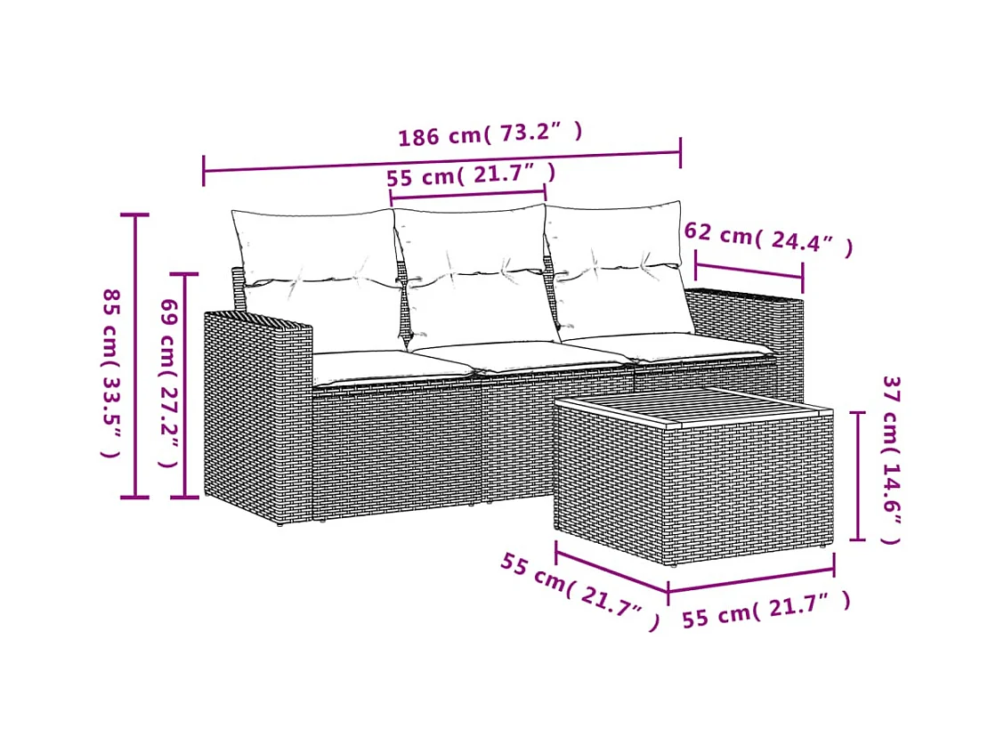 Salon de jardin 4 pcs avec coussins noir résine tressée