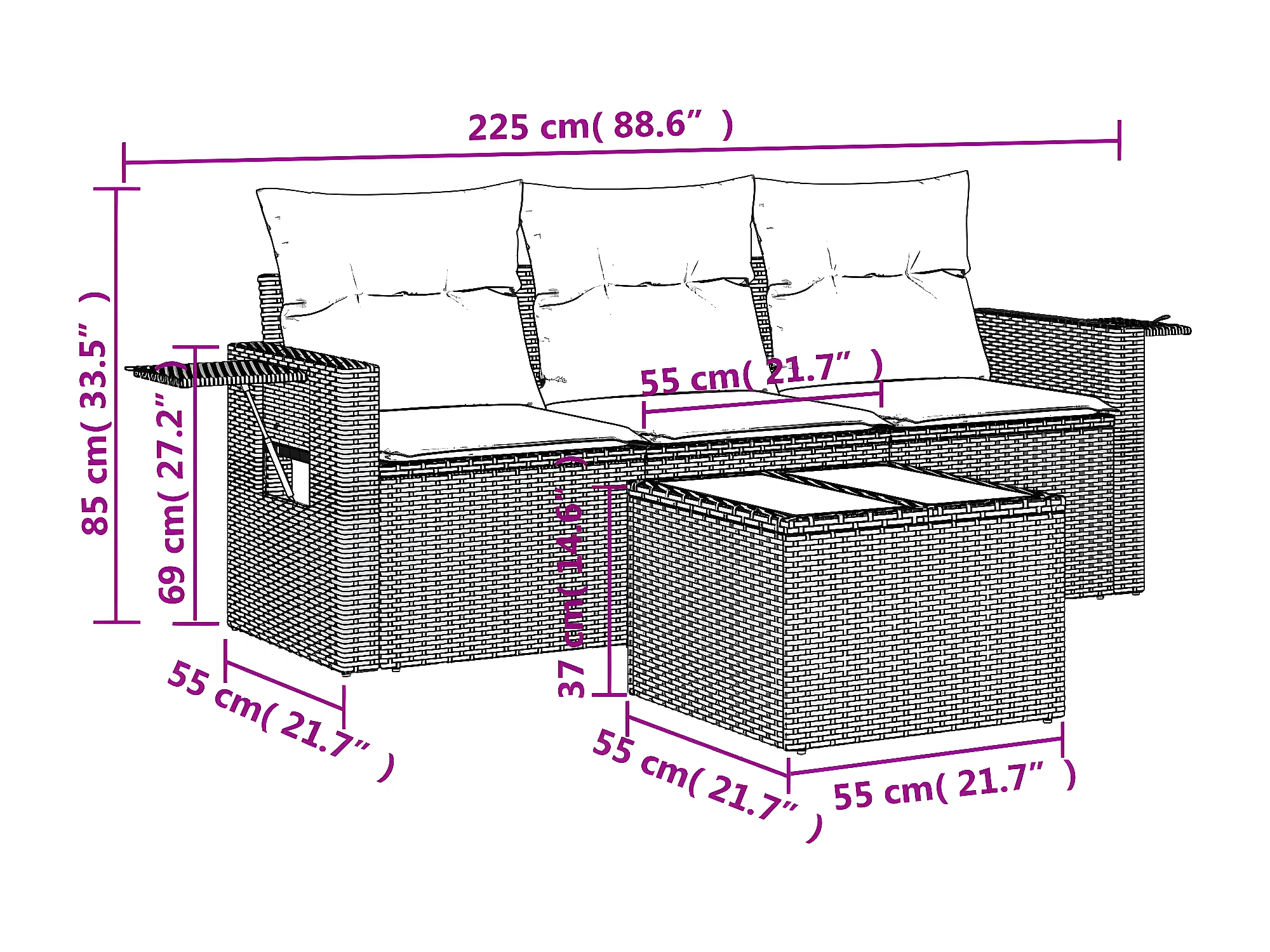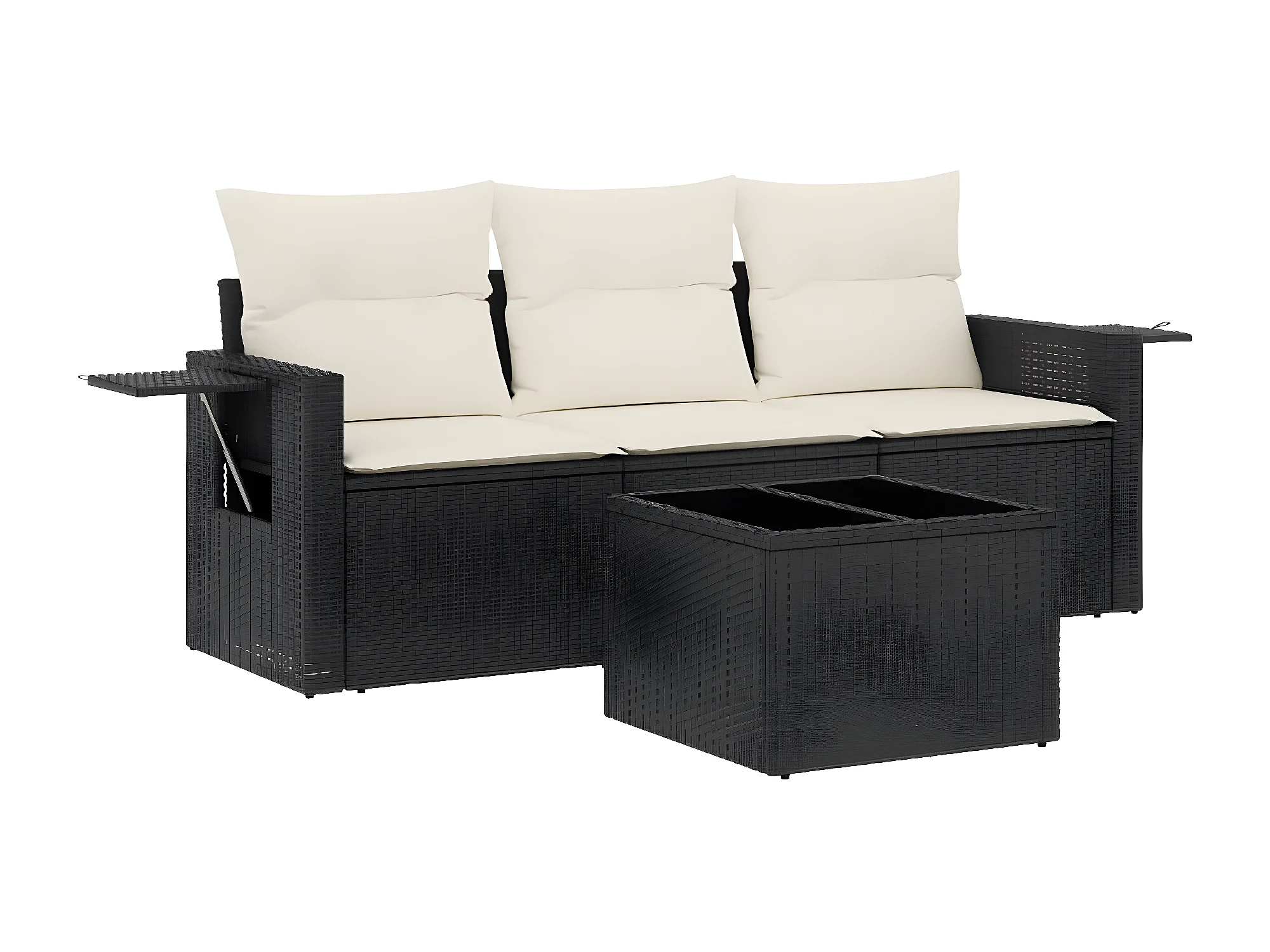 Salon de jardin 4 pcs avec coussins noir résine tressée