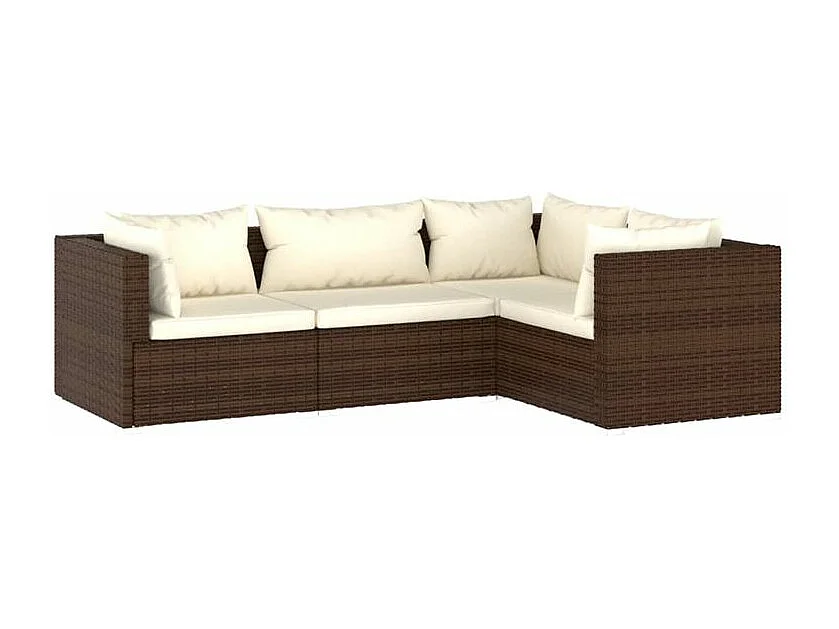 Salon de jardin 4 pcs avec coussins Résine tressée Marron