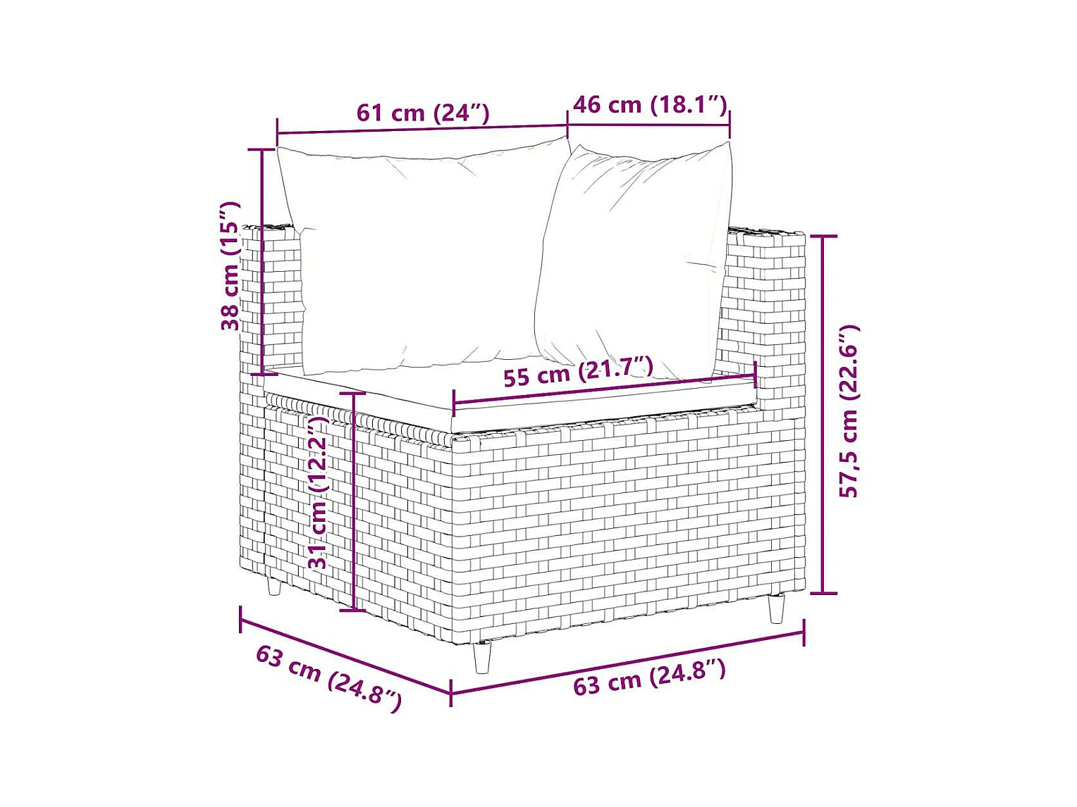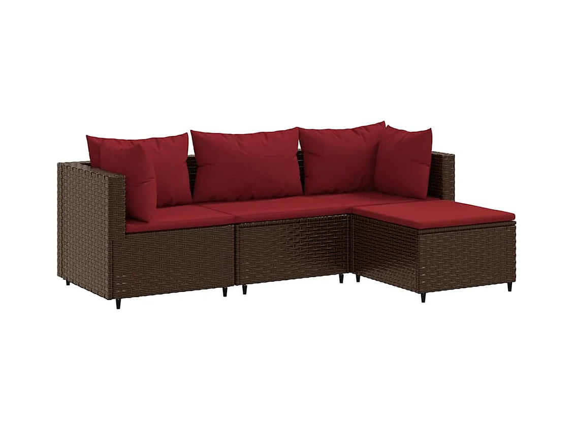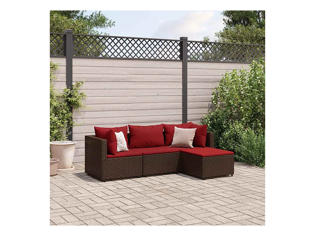 Salon de jardin 4 pièces avec coussins Marron Résine tressée