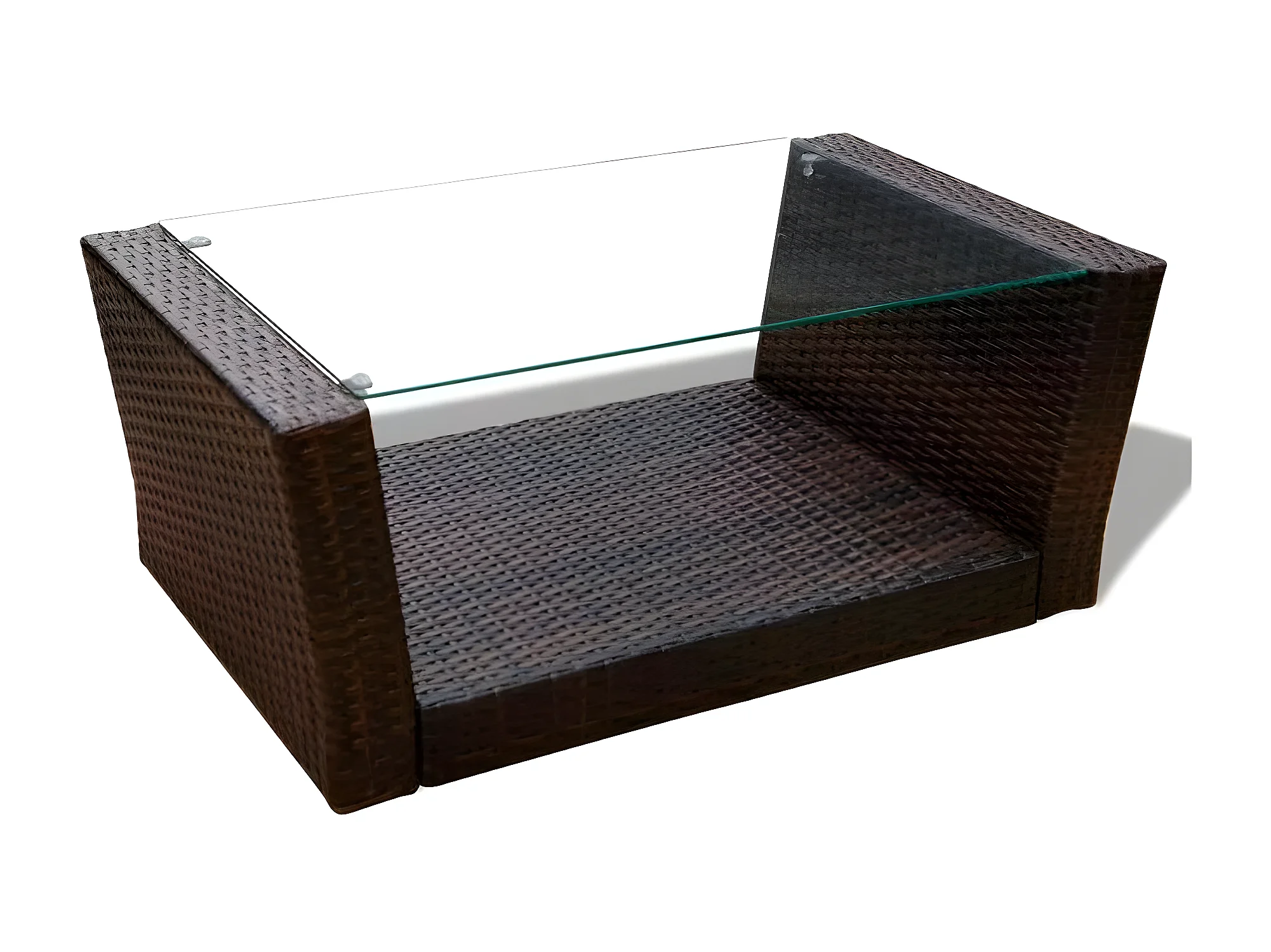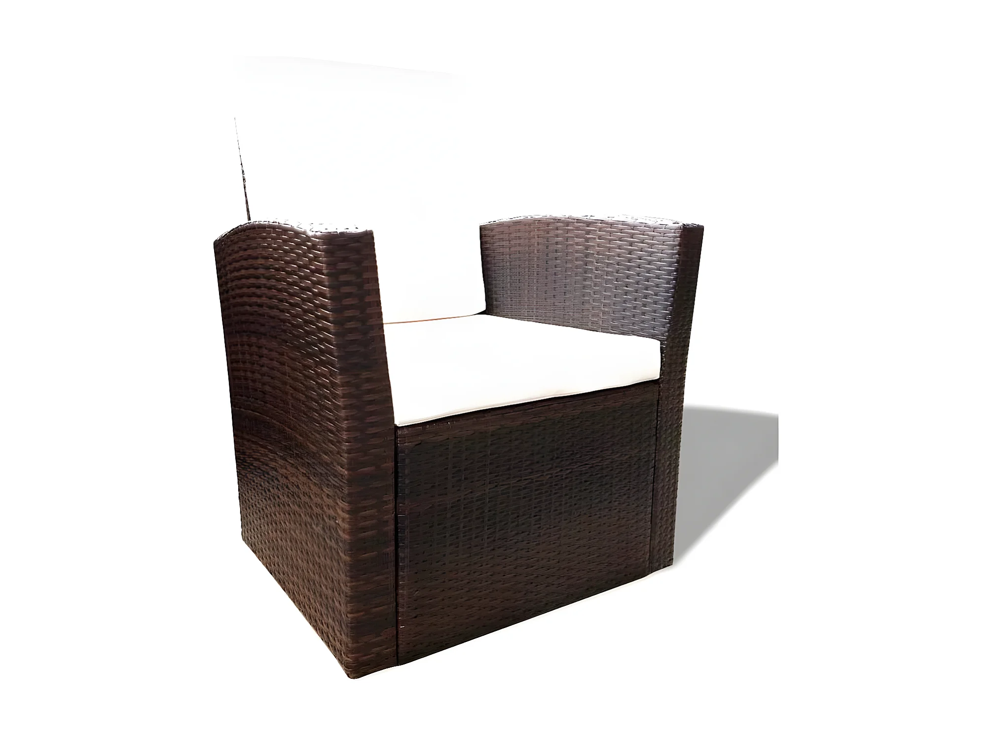 Salon de jardin 4 pièces résine tressée marron et coussins blanc Kim 3