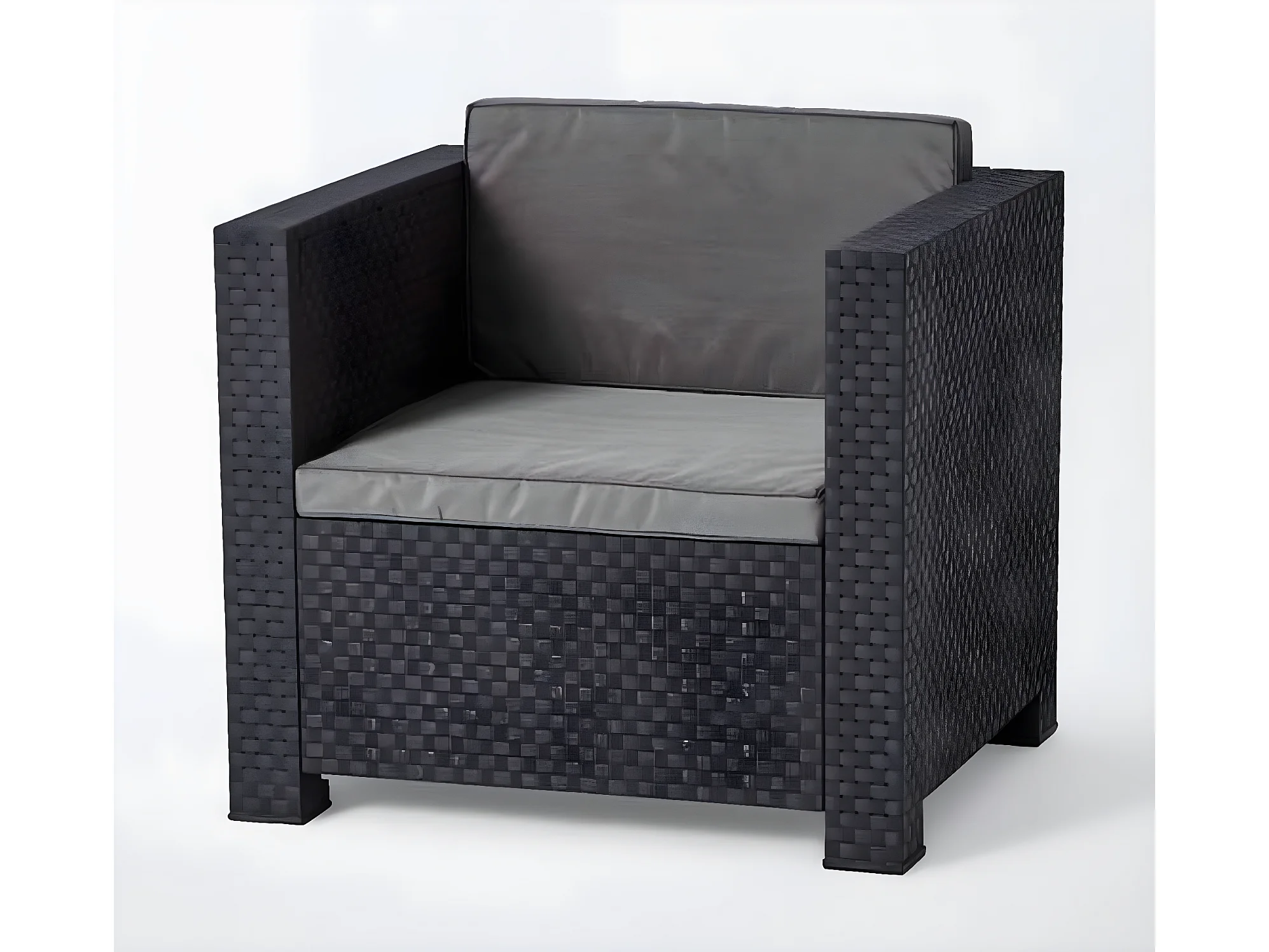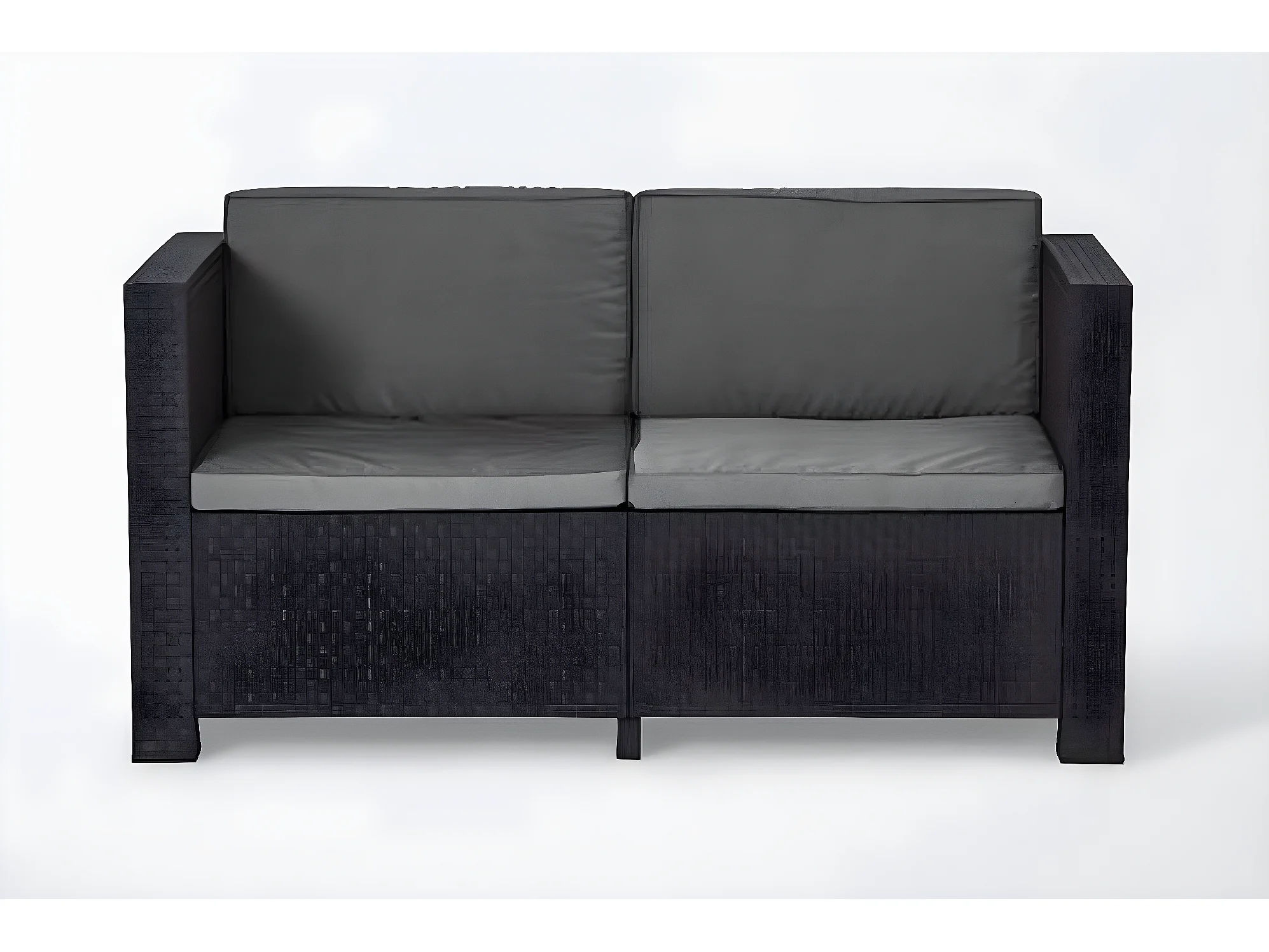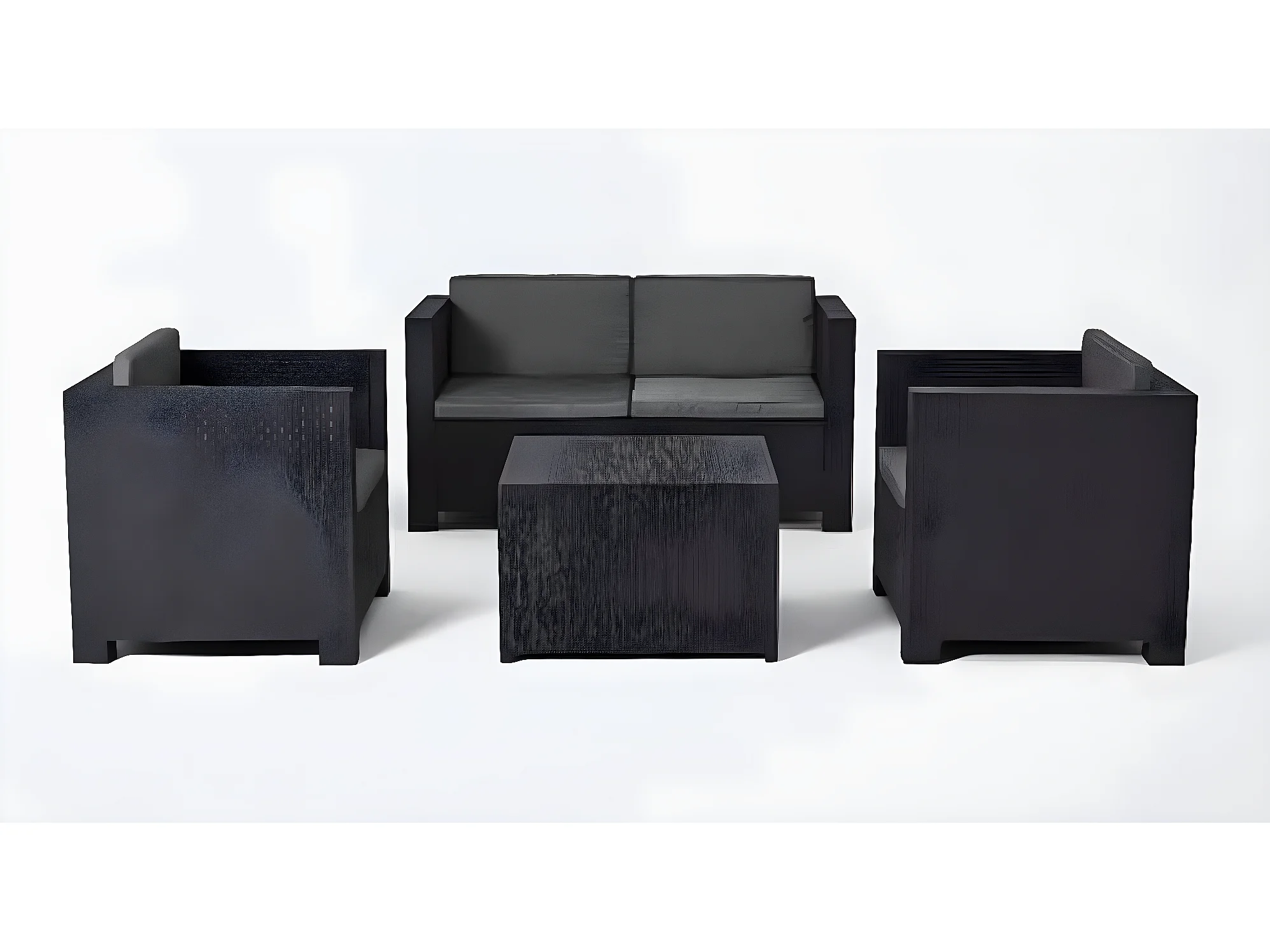 Salon de Jardin 4 Places en résine coloris Anthracite (1 canapé 2 places + 2 fauteuils + 1 table basse)