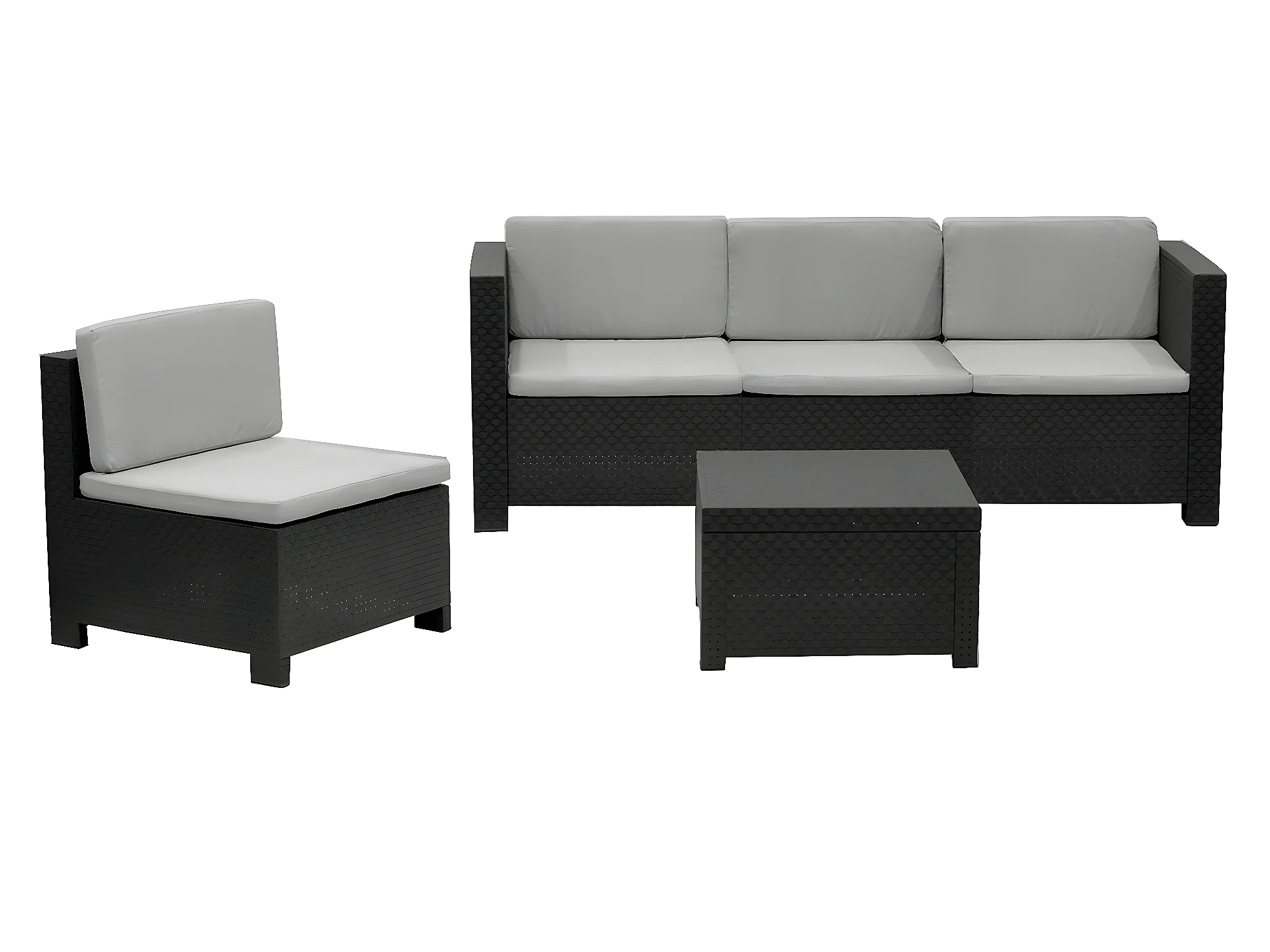 Salon de jardin 4 places modulable en résine tressée coloris anthracite (4 fauteuils + table basse)