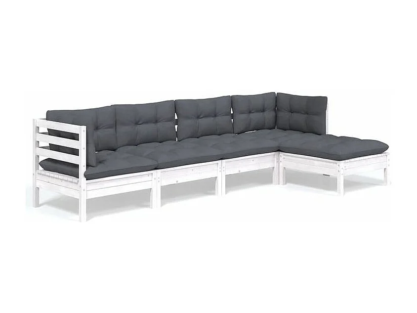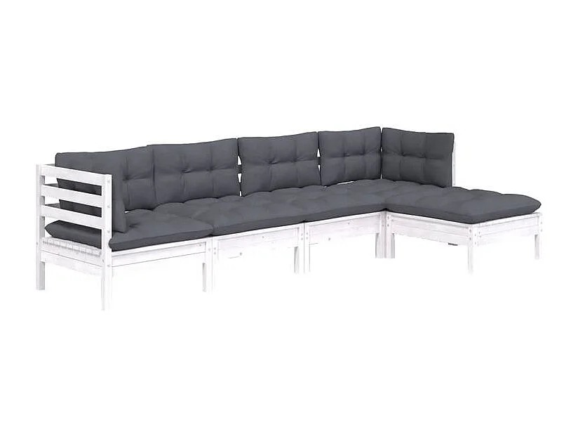 Salon de jardin 5 pcs avec coussins blanc bois de pin