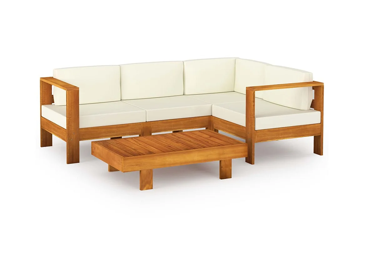 Salon de jardin 5 pcs avec coussins blanc crème Bois d'acacia